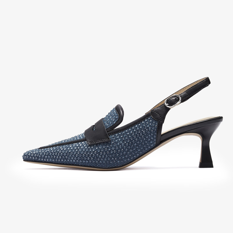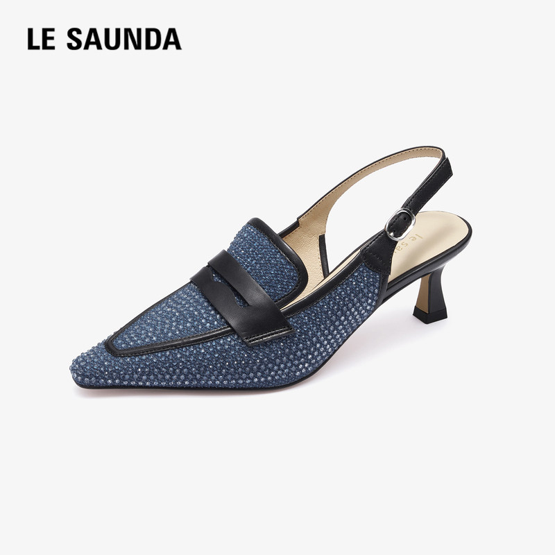 清仓特卖莱尔斯丹新款时尚优雅拼色小方头细跟后空女凉鞋4M56101