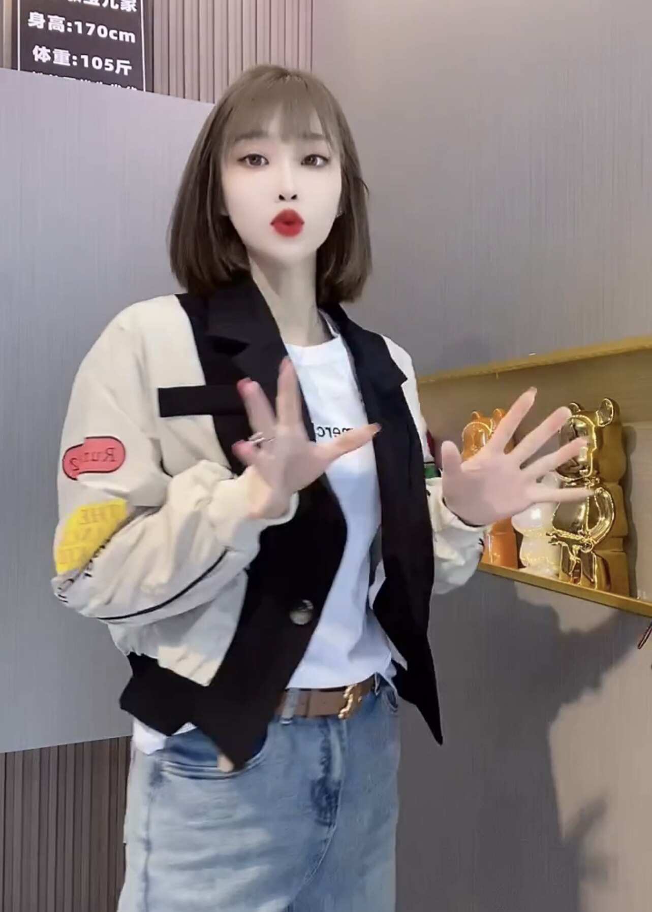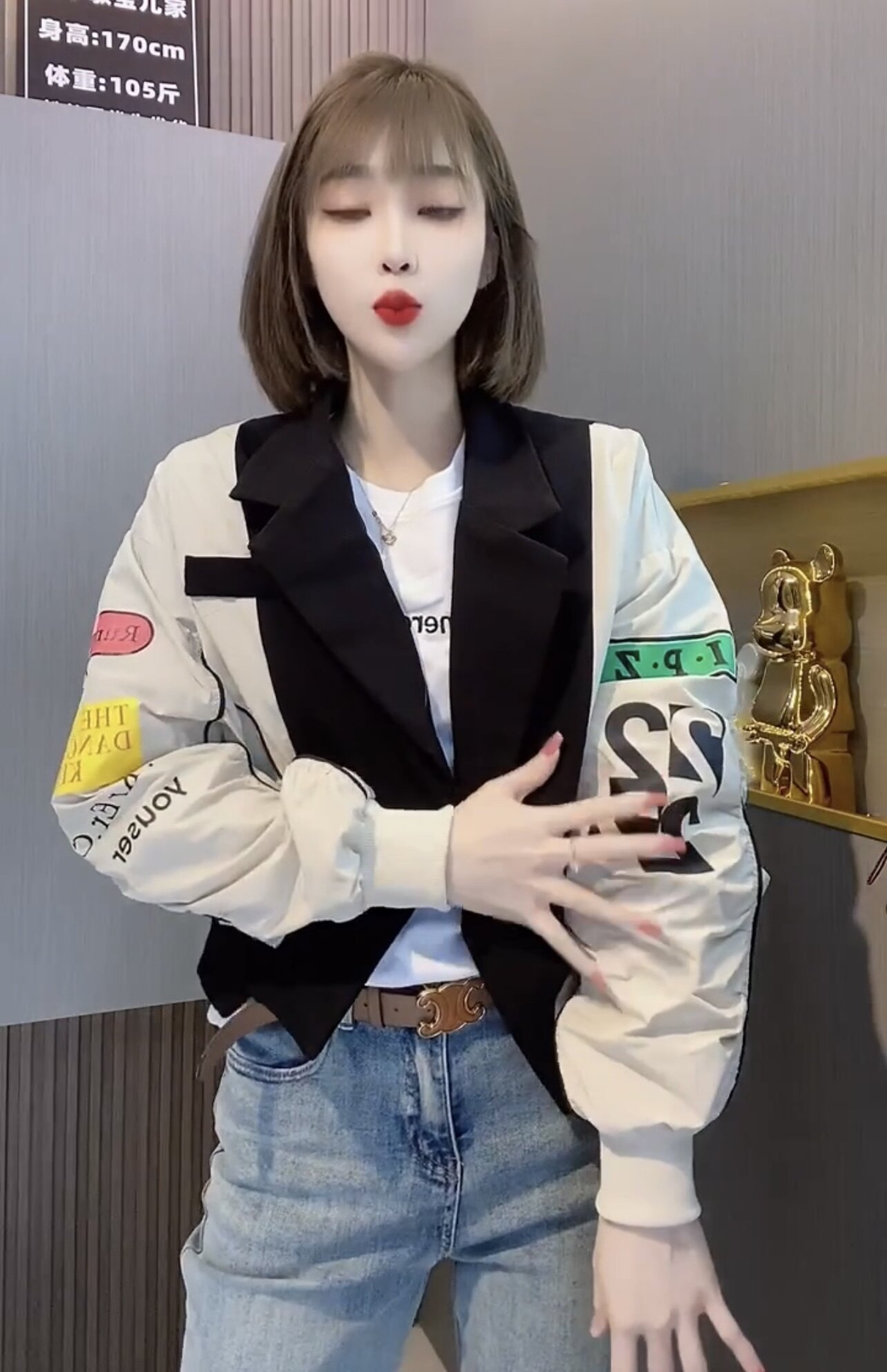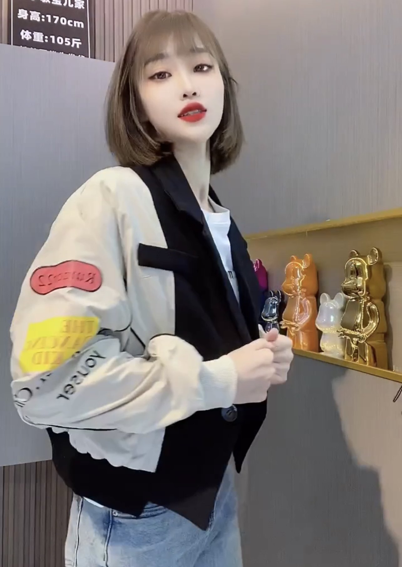 韩范时尚拼色棒球服女宽松2025春季新款夹克西装领上衣显瘦短外套