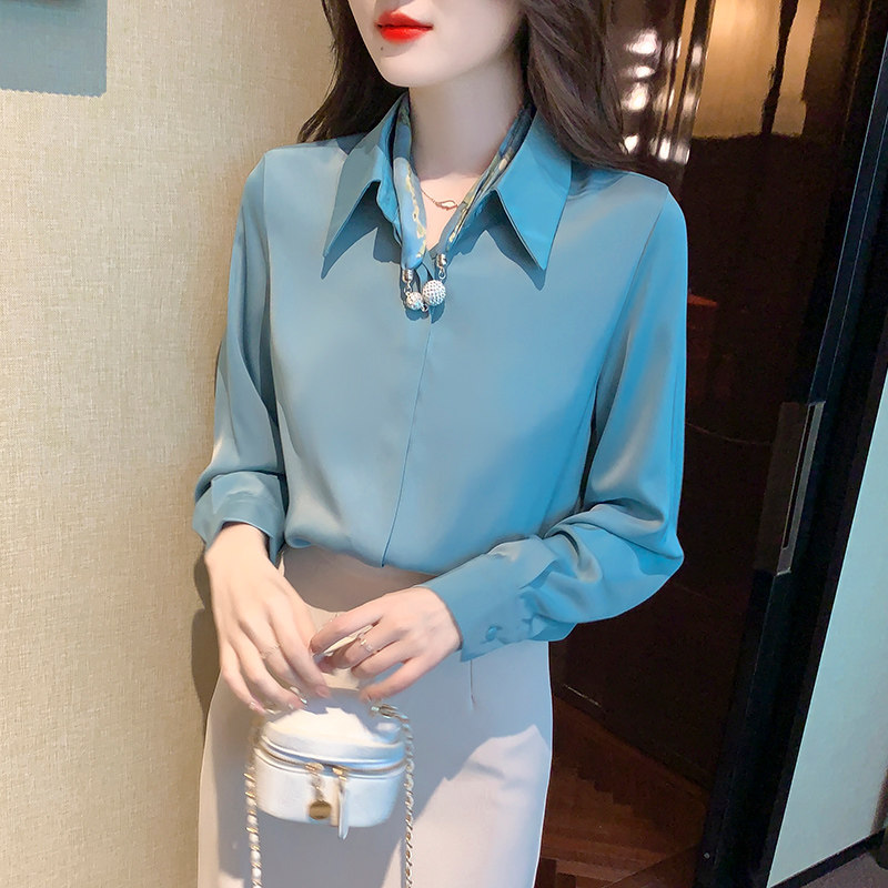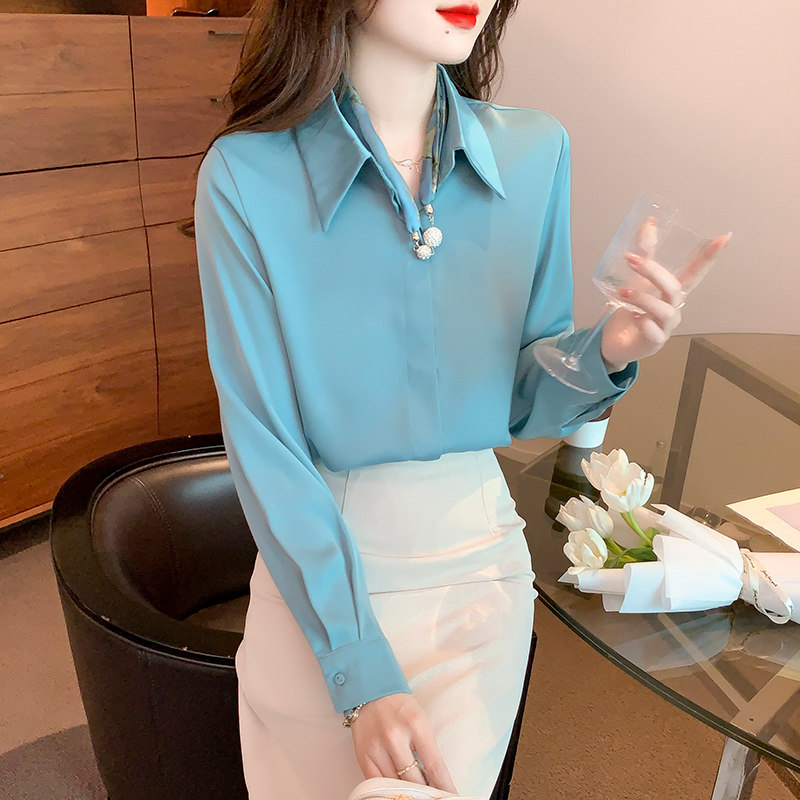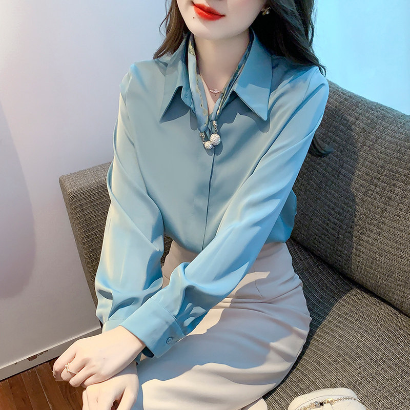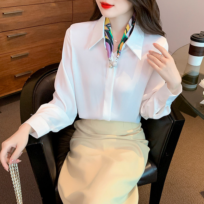 白色雪纺衬衫女秋装2025新款法式高级感领结职业衬衣长袖打底上衣