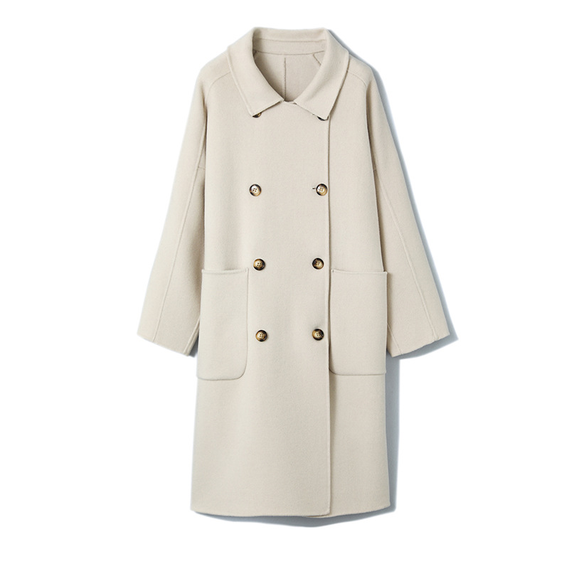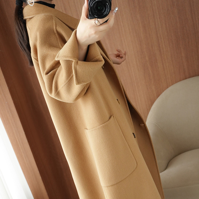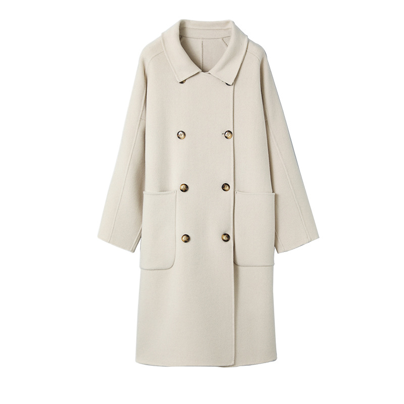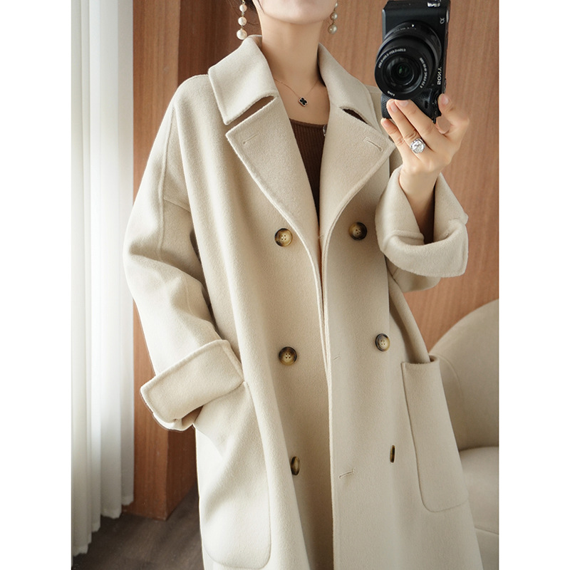秋冬新款大码毛呢廓形纯色双面羊毛大衣女加长款过膝呢子外套2025
