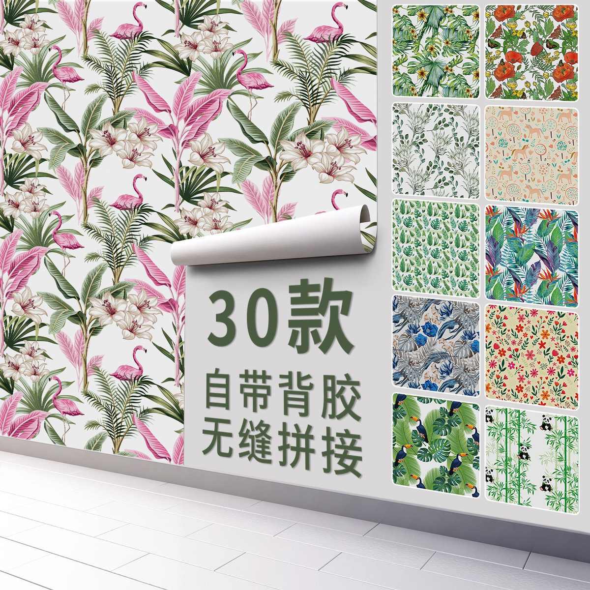 花卉绿植墙纸自粘壁纸客厅沙发电视背景墙装饰北欧艺术防水墙贴