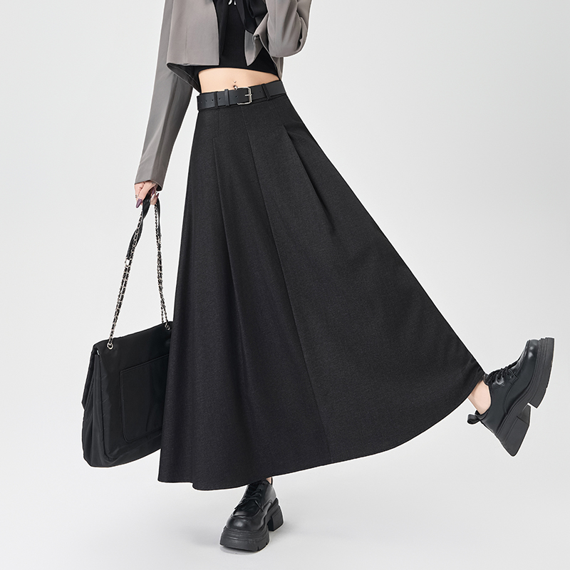 实拍2025秋冬新款灰色仿牛仔半身裙女中长款百褶裙遮胯a字长裙子