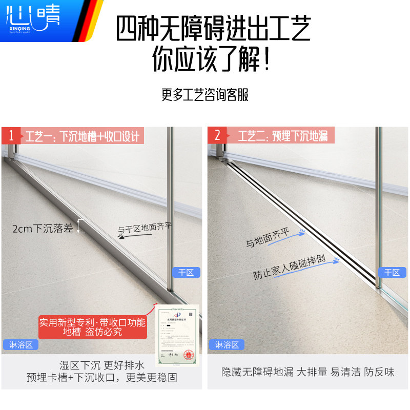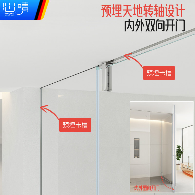 心晴干湿分离玻璃隔断门一字型无框到顶下沉式平开门全封闭淋浴房