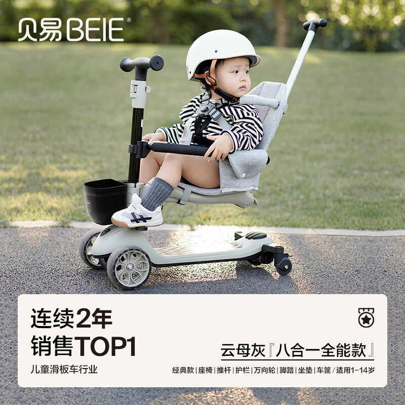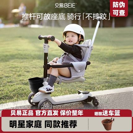 贝易三合一儿童滑板车1到3岁6岁可折叠可座宝宝滑滑学步溜娃神器