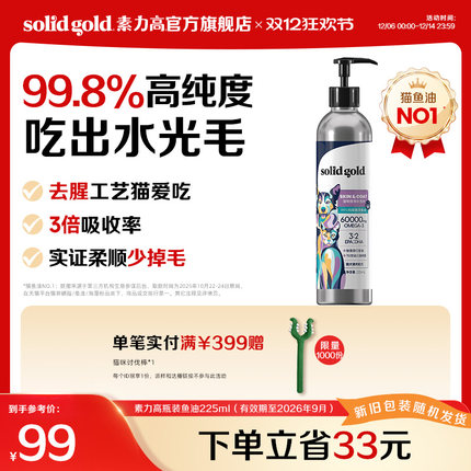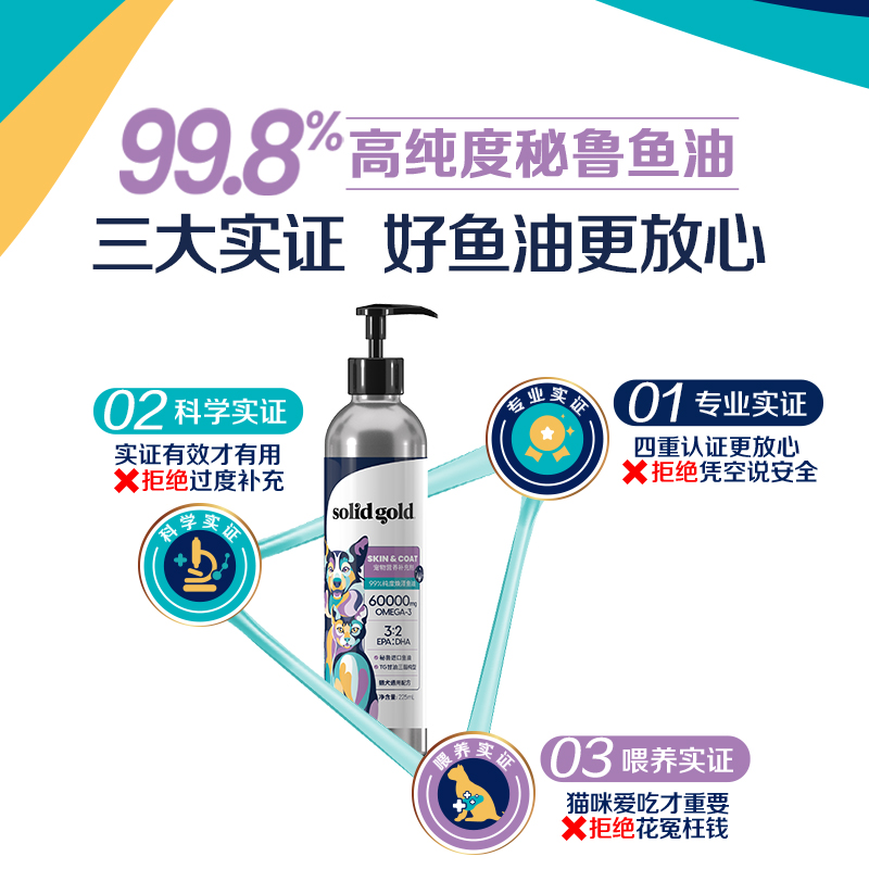 【官方旗舰】素力高99%高纯度鱼油猫狗通用柔顺美毛鱼油