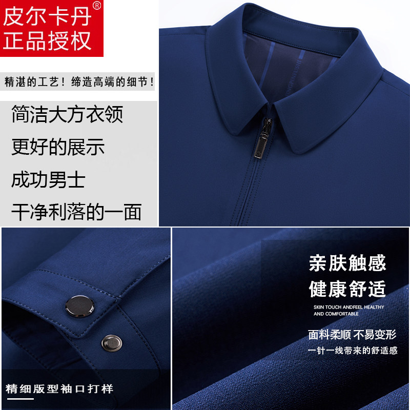 皮尔卡丹桑蚕丝夹克男秋季新款中老年爸爸装纯色领导干部行政外套