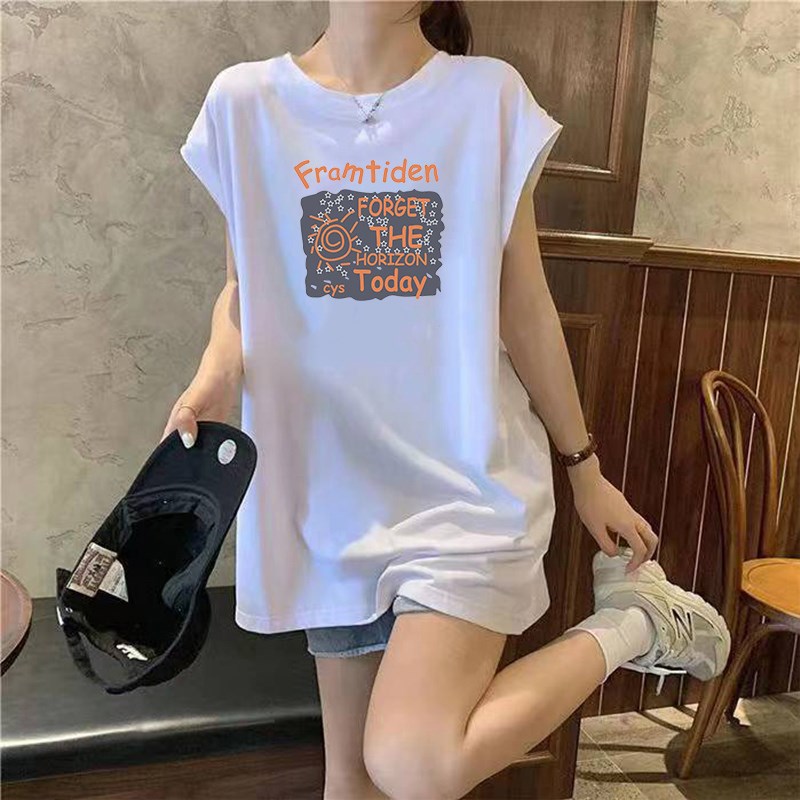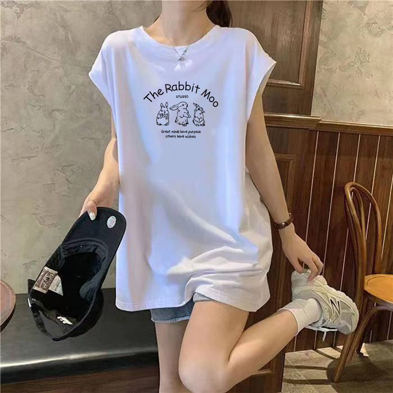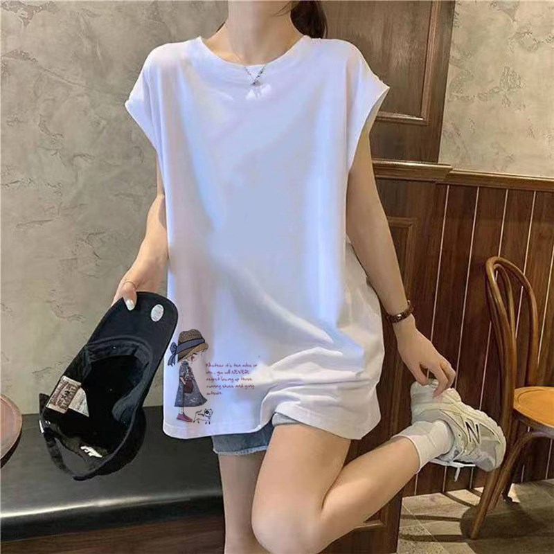 纯棉白色背心女夏季宽松外穿设计感美式无袖t恤中长款遮屁股上衣
