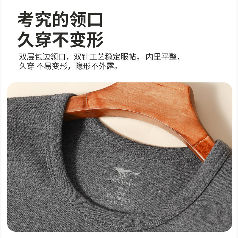 七匹狼秋衣男款100%纯棉内搭单件上衣打底全棉毛衫冬季保暖内衣男