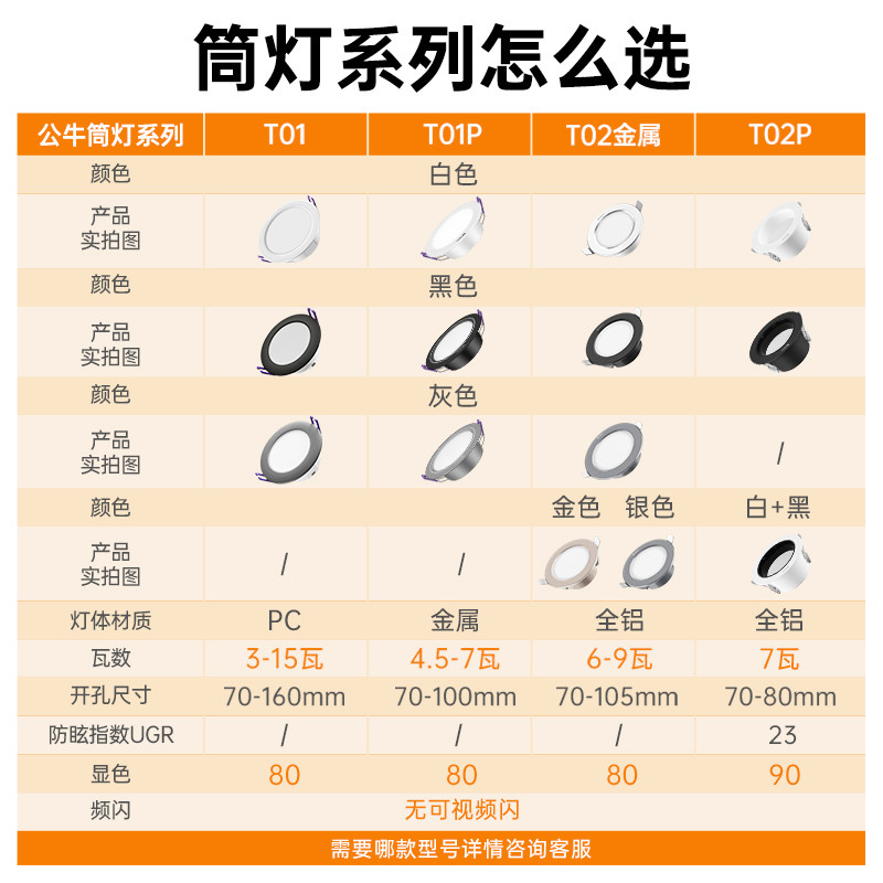公牛筒灯嵌入式75mm家用简灯孔灯天花板桶灯led桶灯洞灯铜灯4寸