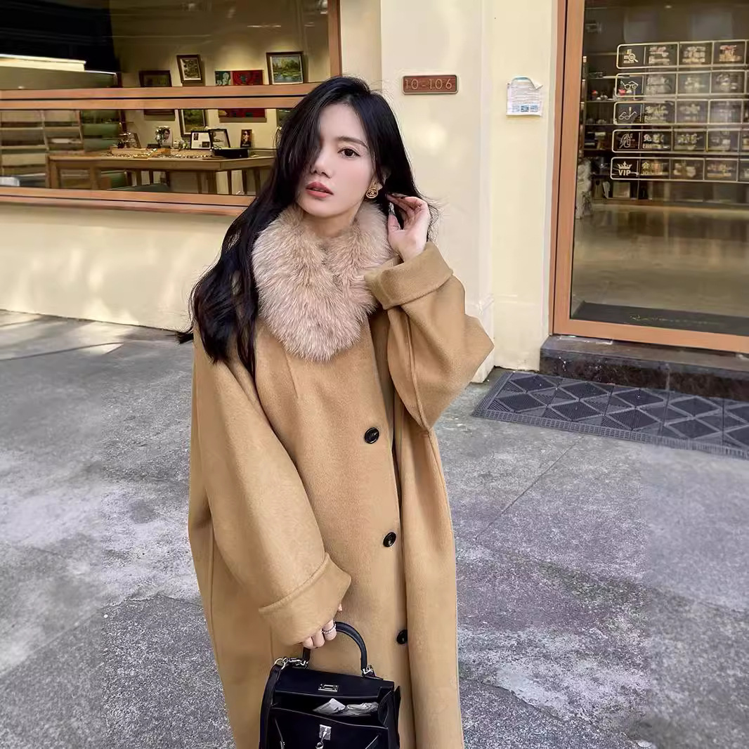 瑞士雪夜25秋冬新款感双面羊绒大衣女狐狸毛韩版毛呢皮草外套高档