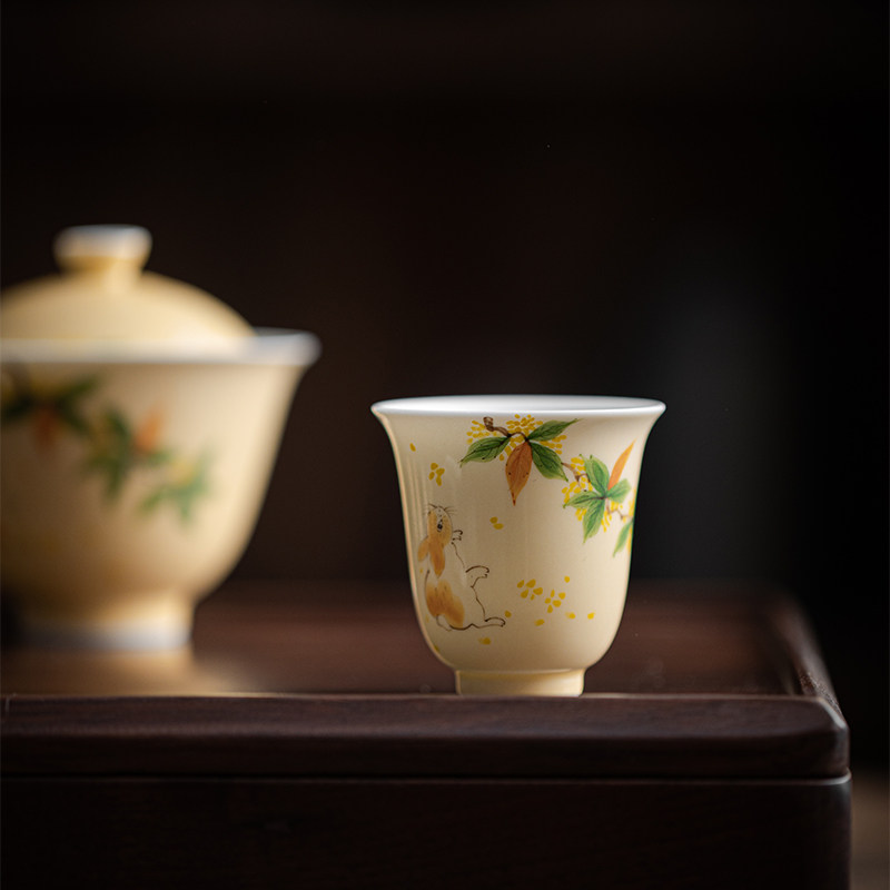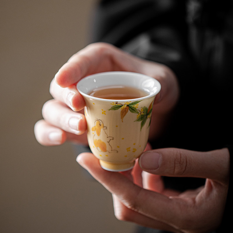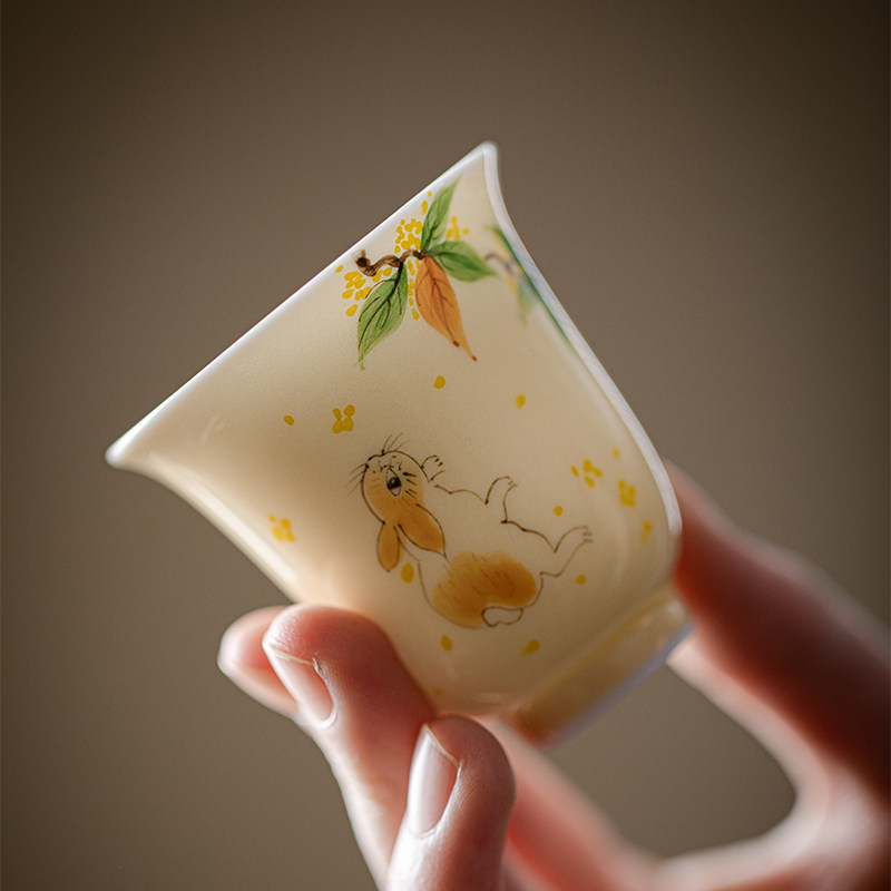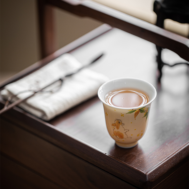 舍己宜物手绘陶瓷家用品茗杯陶瓷主人杯薄胎茶杯功夫茶具复古喝茶
