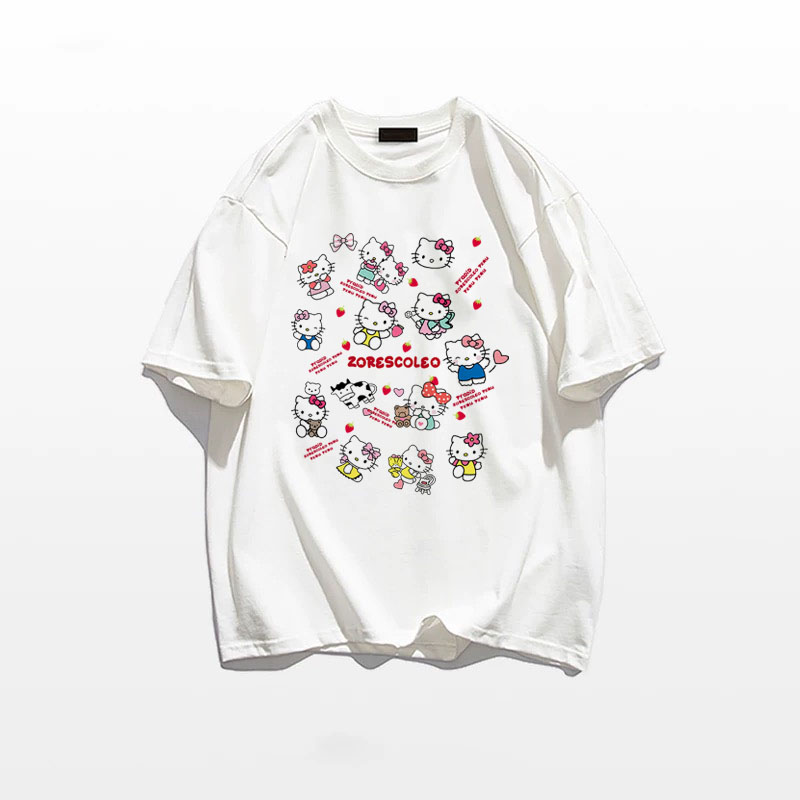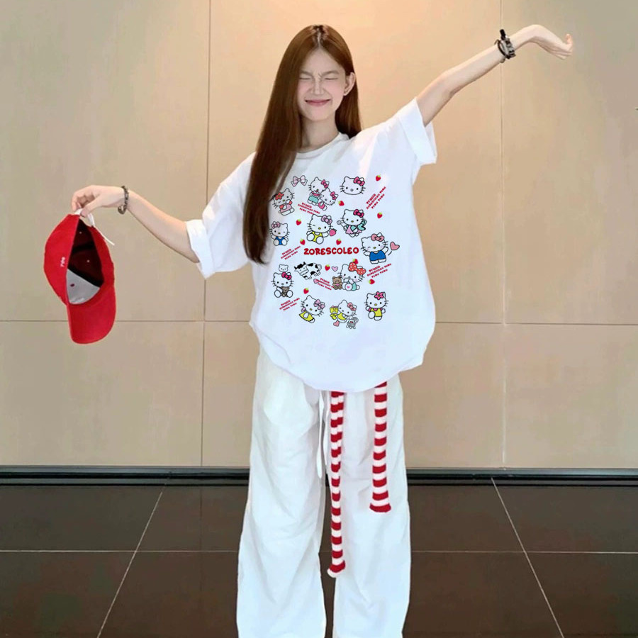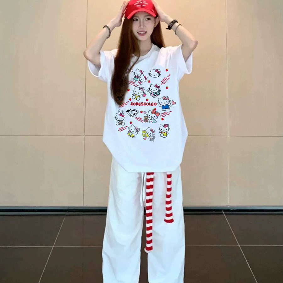 夏季大码胖MM白色kitty猫短袖重磅T恤女宽松遮肉半袖上衣中长款女
