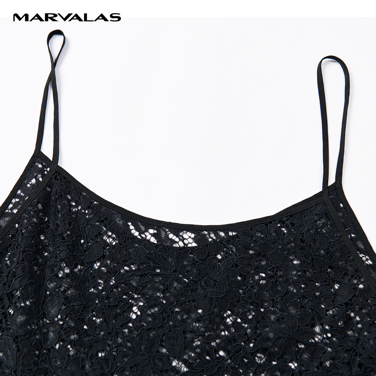 曼德诗吊带蕾丝裙女2025夏季新款设计感法式小黑色蕾丝连衣裙叠穿