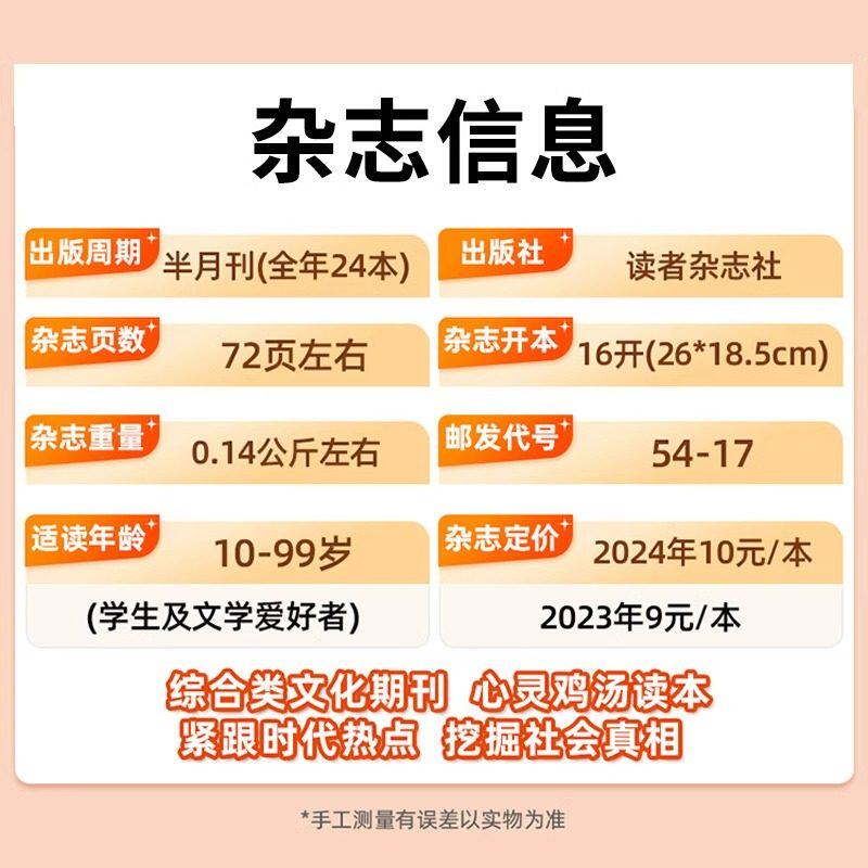 读者杂志2026年1月1/2期现货【全年/半年订阅】2025年1-12月读者初中版学生作文素材意林青年文摘高考励志文学合订本过期刊