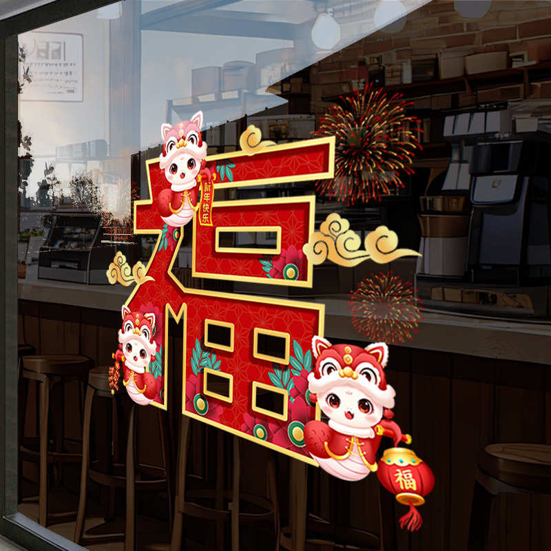 2025新年福字贴店铺橱窗玻璃门贴纸春节装饰布置蛇年商场静电窗花