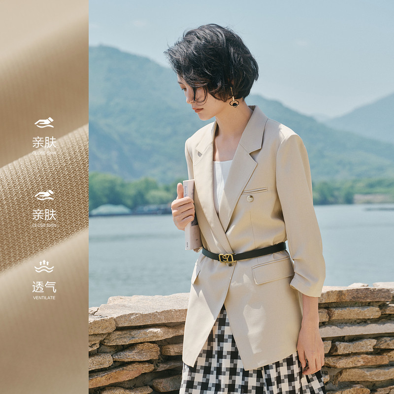 水云间七分袖小西装外套女士通勤职业西服一粒扣气质2025夏季新款
