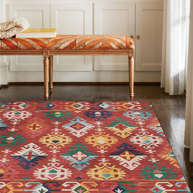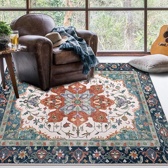 楼兰美惠 民族风正方形地毯客厅民宿茶几垫美式复古钢琴垫地毯大