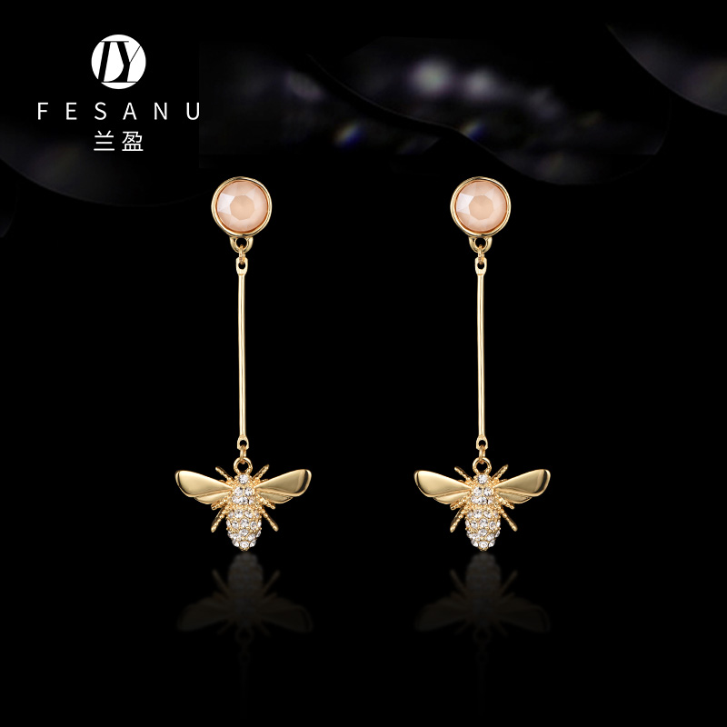 兰盈奥地利水晶耳环 女长款流苏超仙耳坠耳饰 时尚小蜜蜂造型耳挂