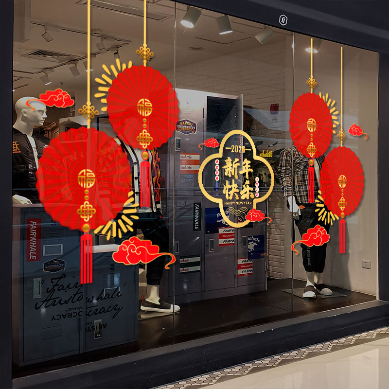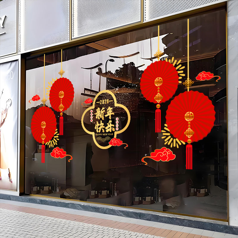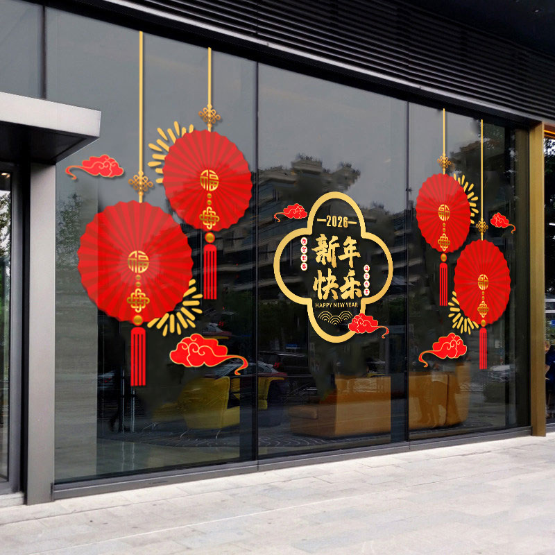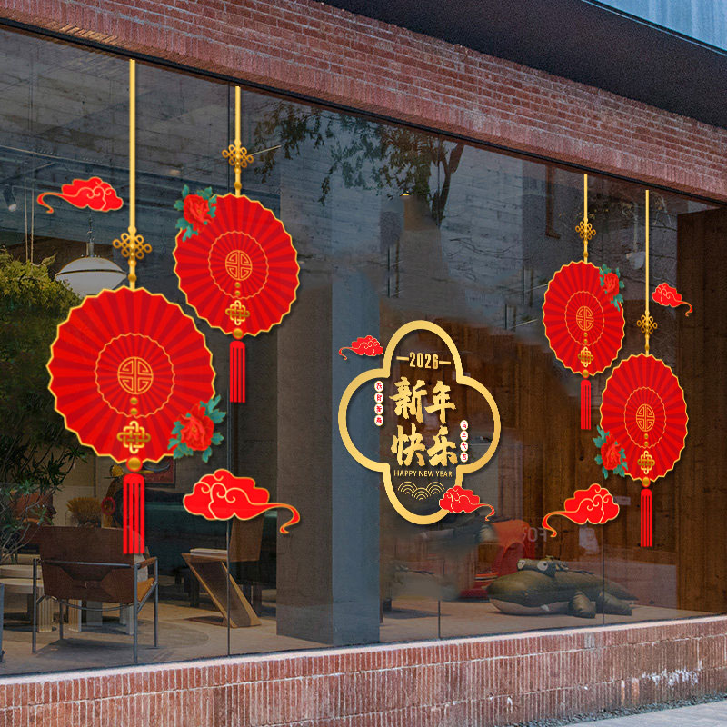 2026马年新年装饰春节静电贴纸商场店铺橱窗玻璃门贴画过年布置贴