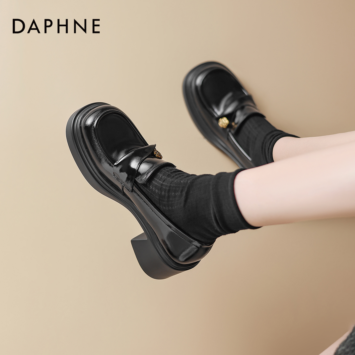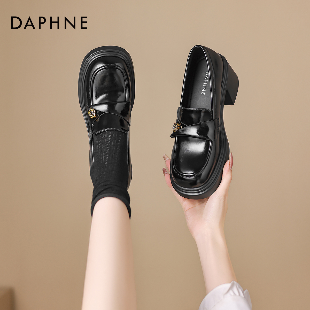 达芙妮山茶花高跟乐福鞋女2025新款秋冬英伦风小皮鞋粗跟增高单鞋