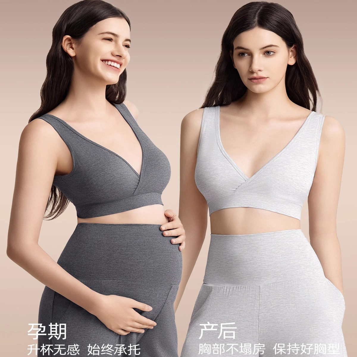 婧麒睡眠哺乳内衣孕妇孕期专用背心式无钢圈睡觉可穿大胸喂奶文胸