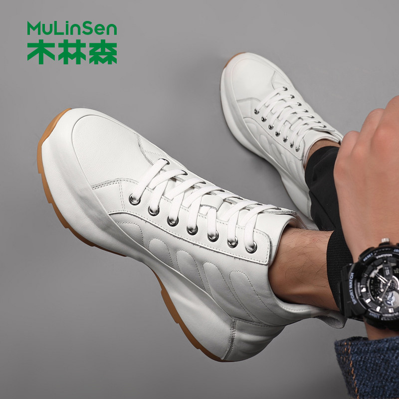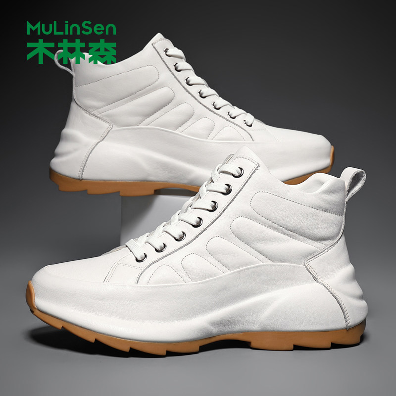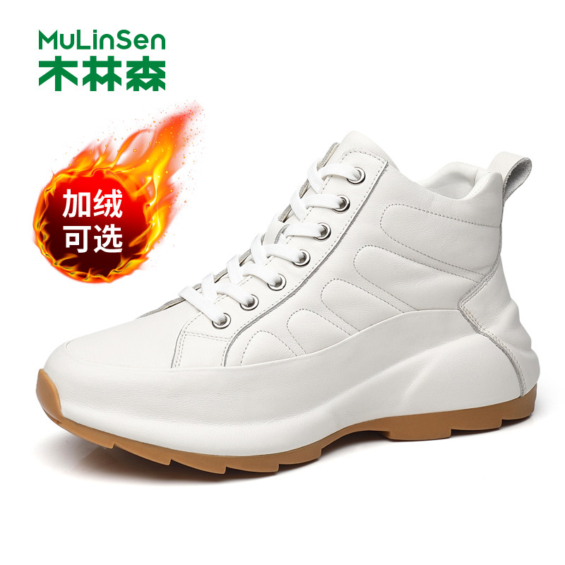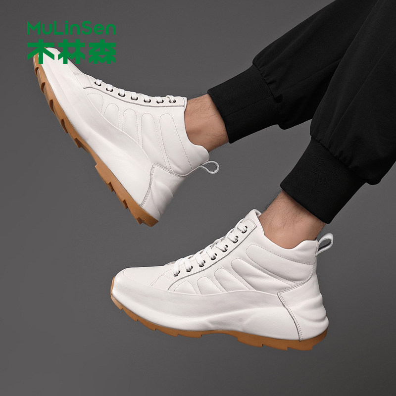木林森男鞋2025冬季新款潮鞋高帮鞋板鞋男士运动休闲鞋真皮小白鞋
