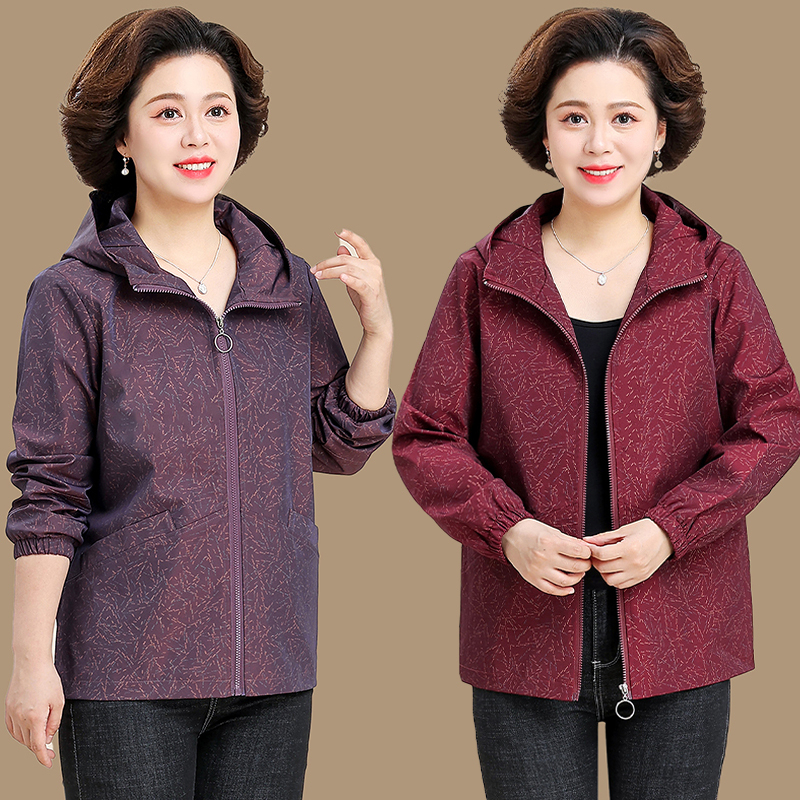 中老年妈妈秋季短款风衣休闲外套女春秋50多岁奶奶洋气上衣服夹克