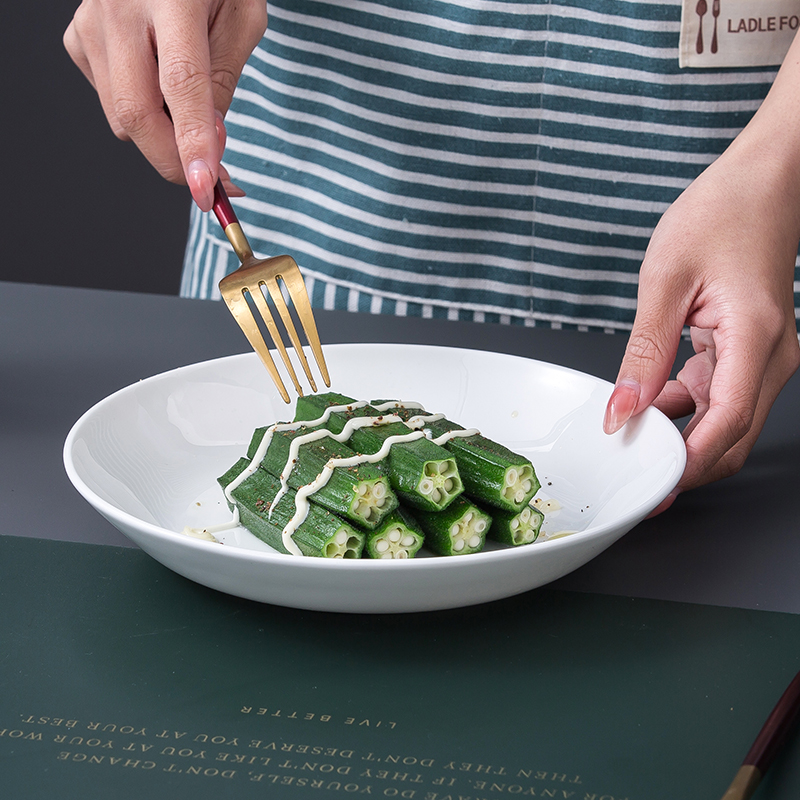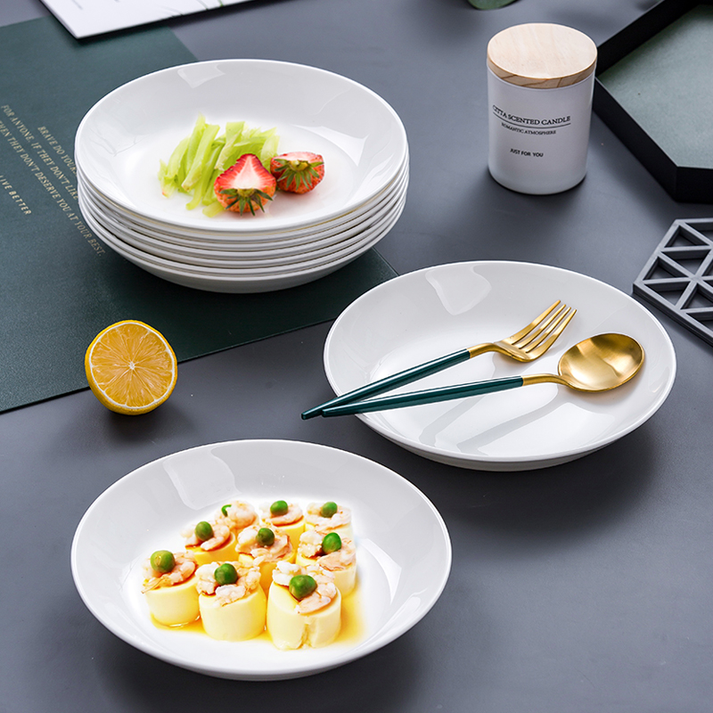 纯白骨瓷盘子菜盘家用简约白瓷餐具碟子10个圆形8寸陶瓷深盘汤盘