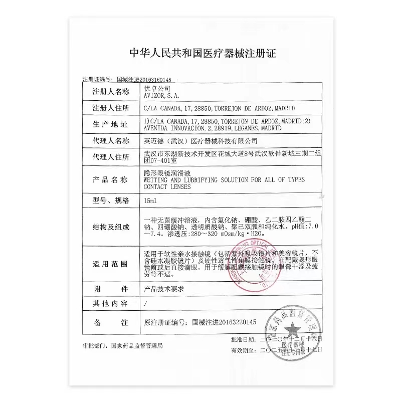 优卓优润润眼液15ml优卓润滑液硬性角膜塑形镜ok镜润滑液舒润液