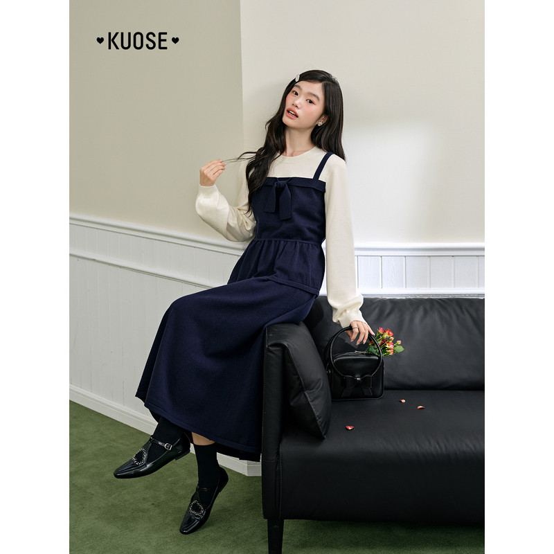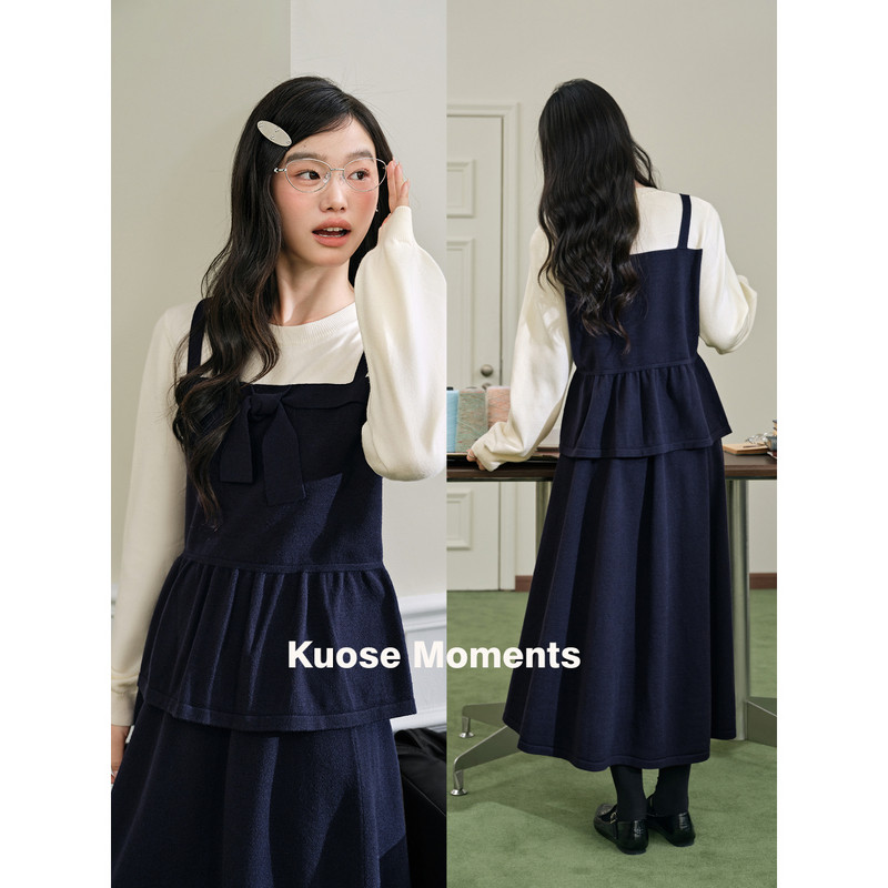 阔色假两件吊带背心毛衣半身裙两件套装25秋冬季新款女半裙上衣蓝