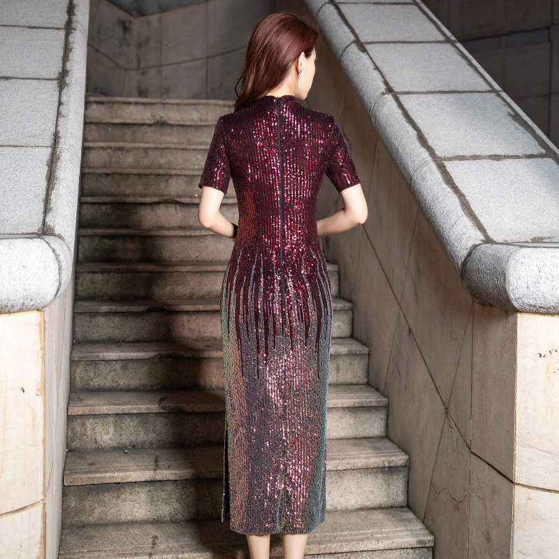 鱼尾晚礼服旗袍女2021新款宴会高贵气质高档中长款高端质感连衣裙