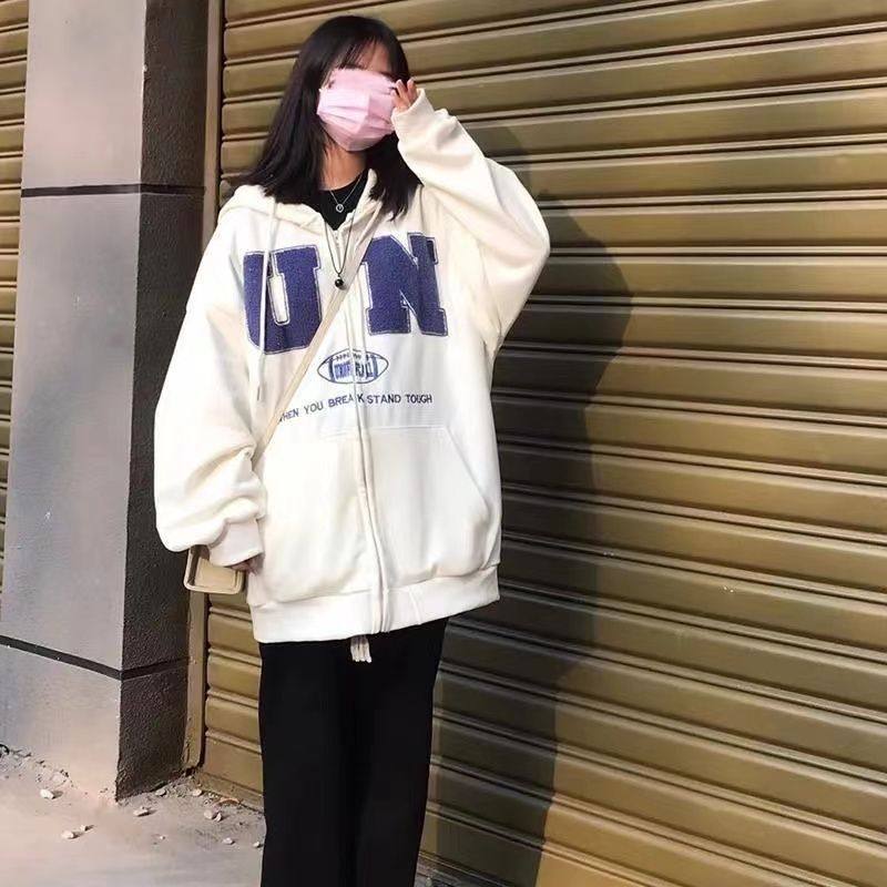 外套女秋冬季潮ins原宿风学生百搭宽松韩版上衣小众休闲连帽卫衣