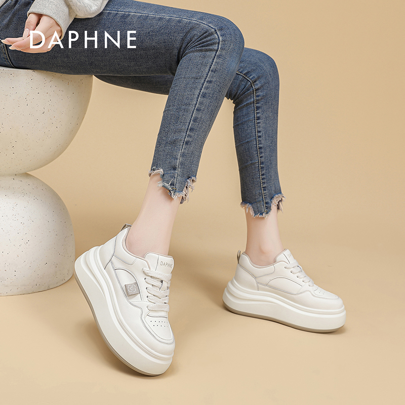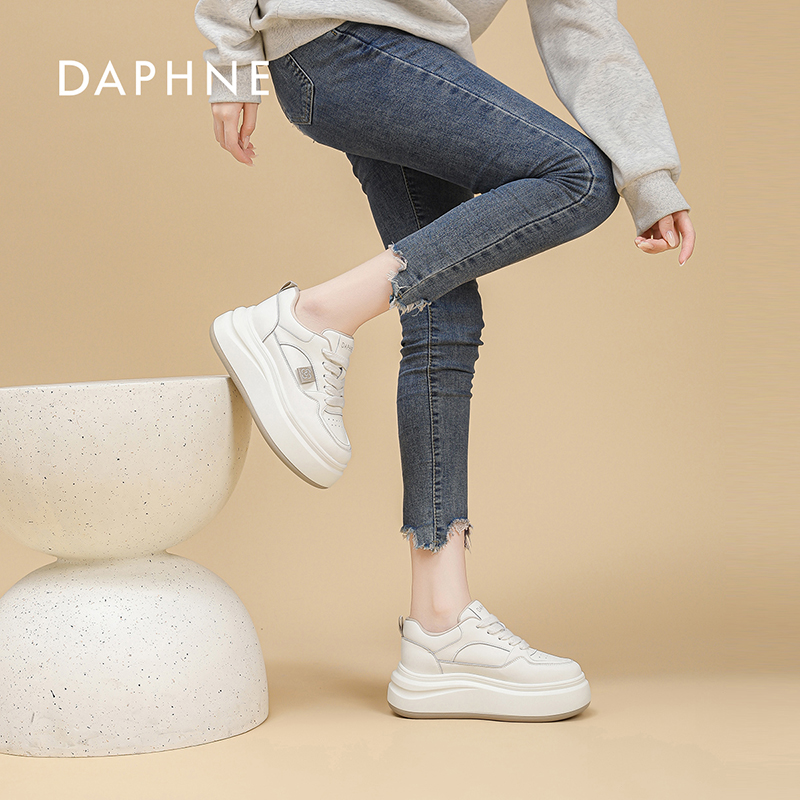 达芙妮2025秋新款舒适时尚百搭运动休闲鞋厚底增高阔腿裤小白鞋A