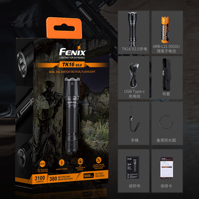 Fenix菲尼克斯TK16 V2.0强光手电筒便携战术户外超亮远射巡防手电