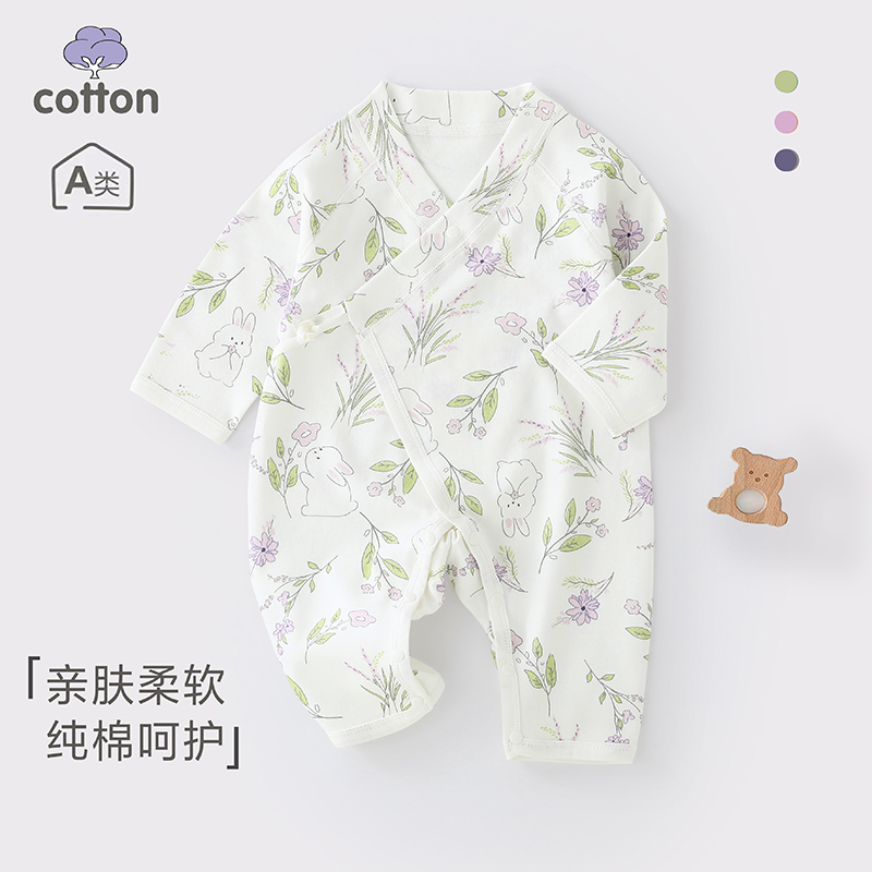 2件装婴儿连体衣春秋季纯棉睡衣宝宝蝴蝶衣可爱爬爬服新生儿哈衣