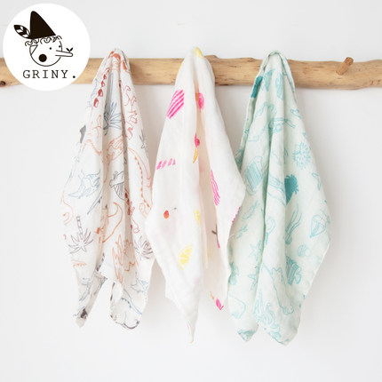 Griny格里尼婴儿纱布手帕新生儿用品宝宝口水巾洗脸小方巾*3条装