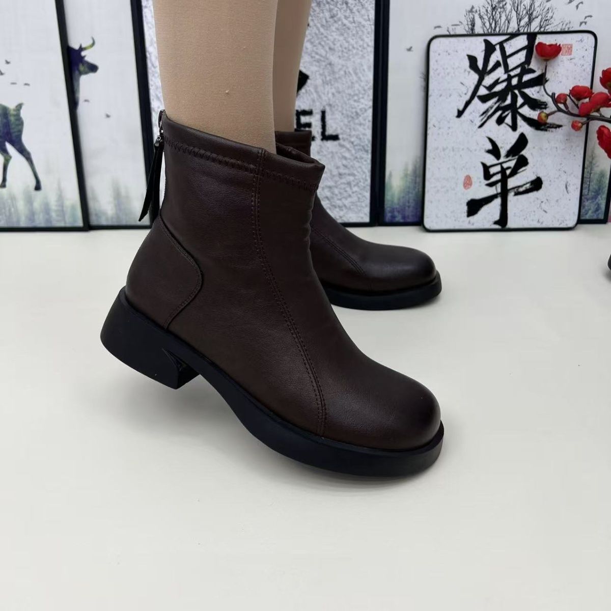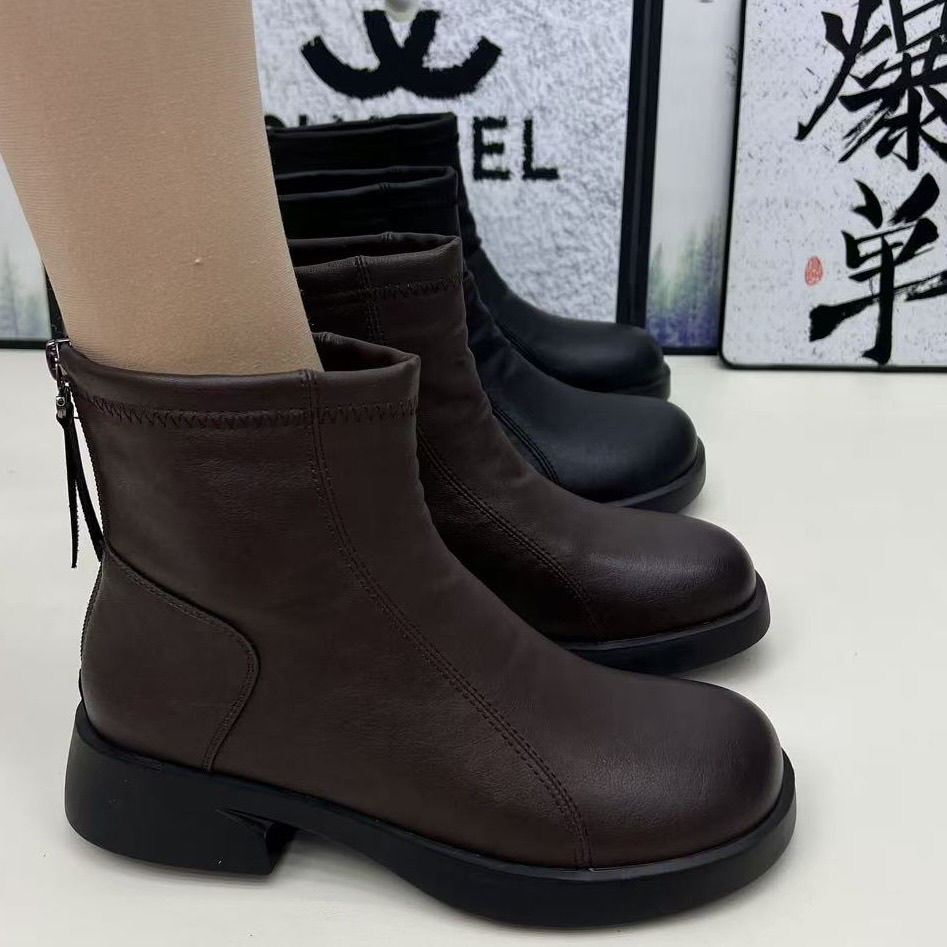 厚底2025靴女英伦增高秋冬新款保暖马丁短靴时尚瘦瘦圆头超软女靴