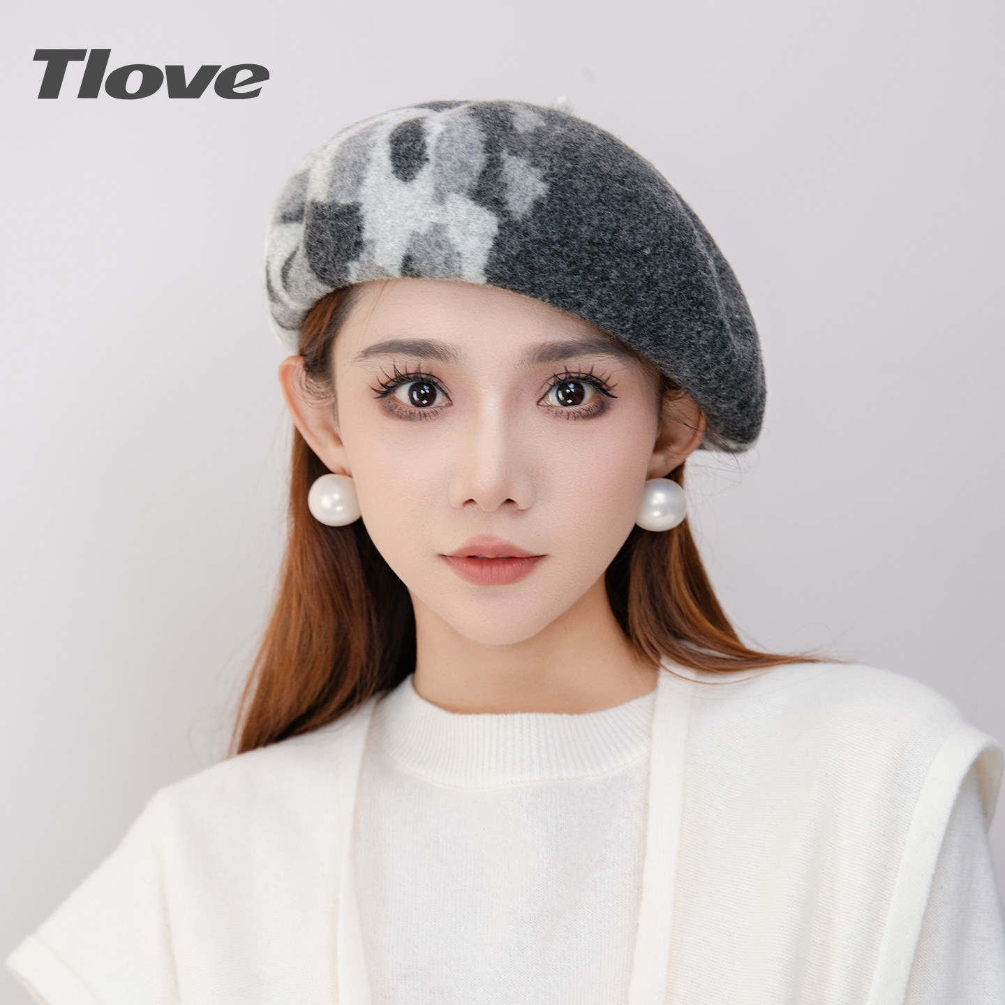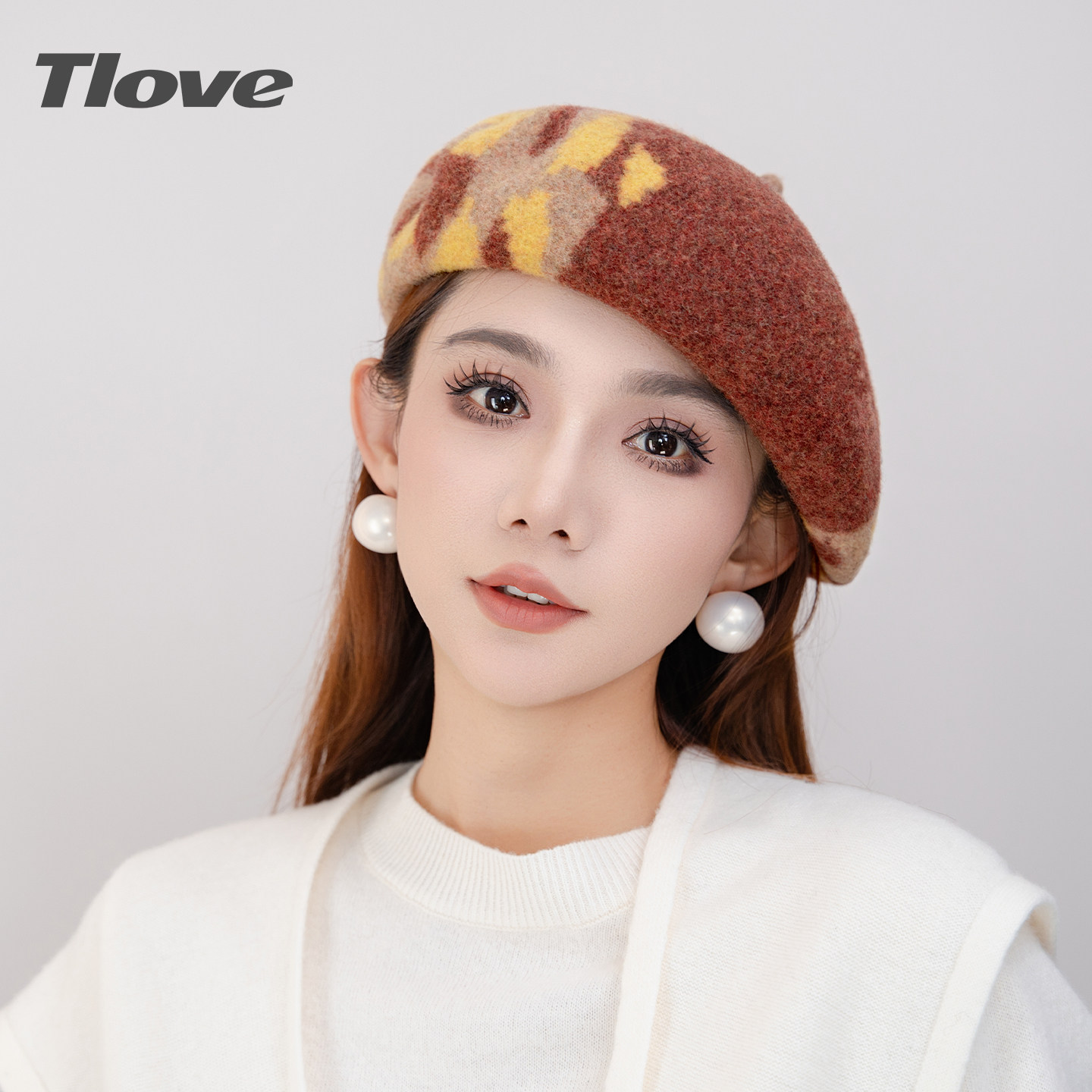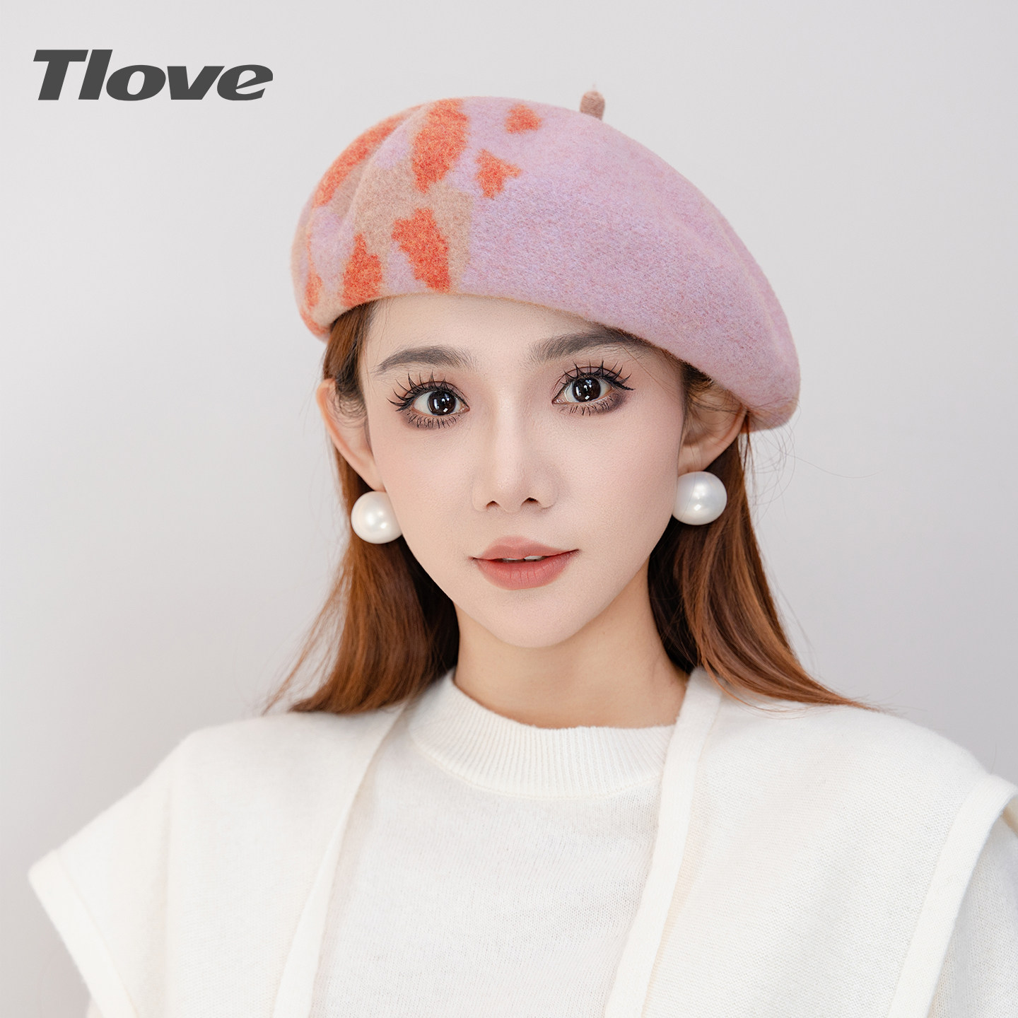 9882+tlove时尚百搭贝雷帽女士秋冬季洋气减龄羊毛帽子逛街蓓蕾帽