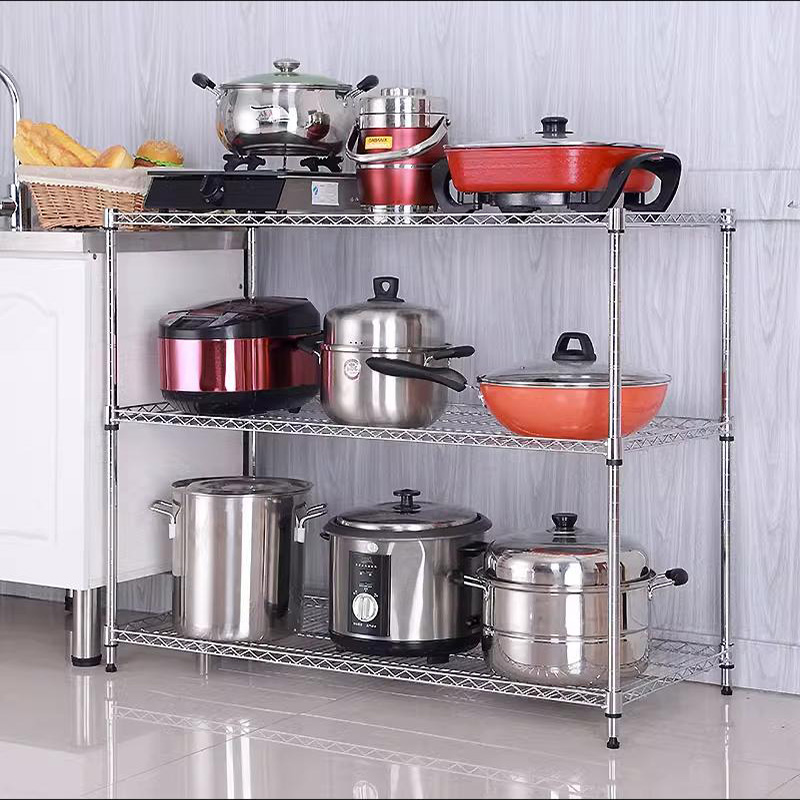 厨房置物架落地多层金属s收纳架不锈钢色网架子可放锅盖菜板储物