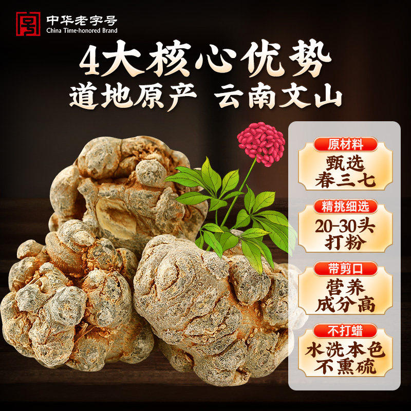 云南文山三七粉正品官方旗舰店头田七中药材三七正品文山特级正宗