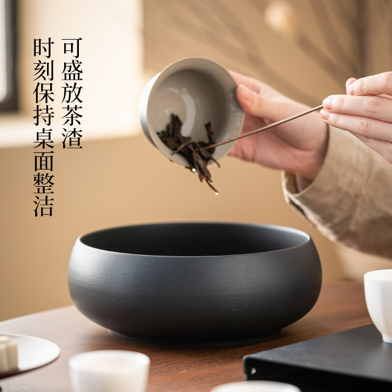 粗陶茶洗茶渣缸建水茶钵水盂茶水缸家用高档大号笔洗茶盆茶道配件