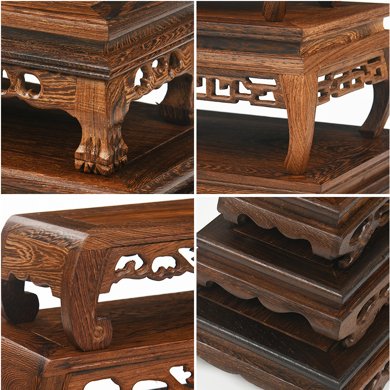 红木雕刻工艺品鸡翅木摆件底座实木托架长方形奇石头花盆佛像底座