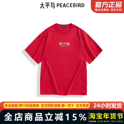 【商场同款】太平鸟男装 休闲T恤腰果花刺绣男红色t恤 B2CNF1128