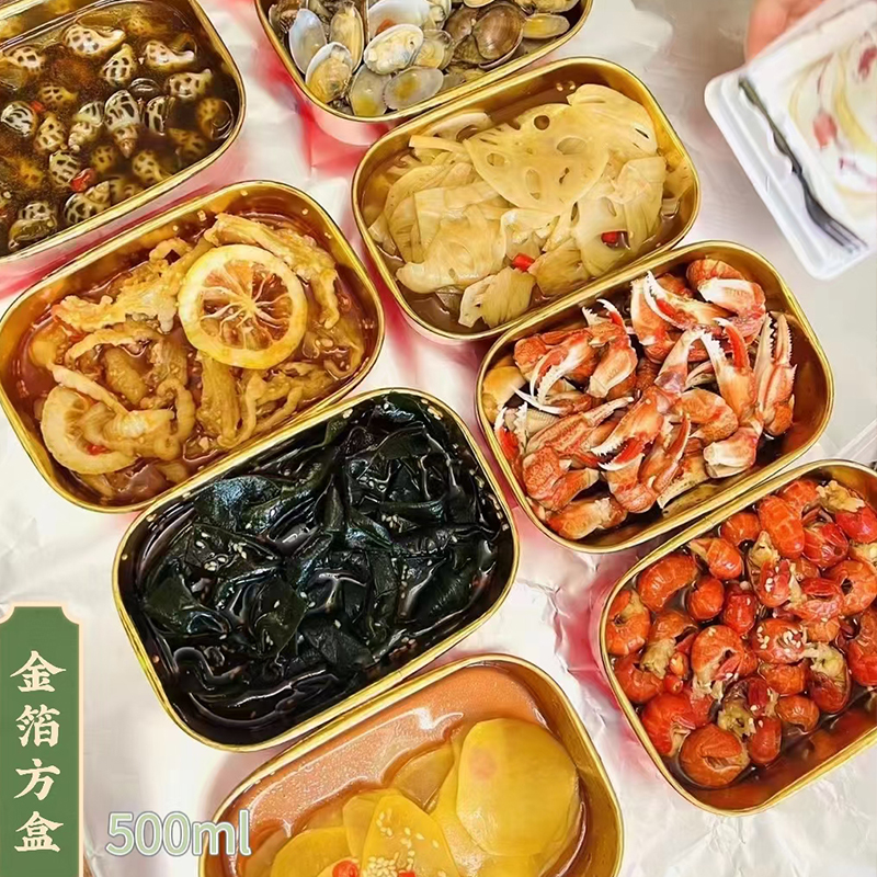 方盒一次性快餐盒加厚打包盒海鲜三文鱼铝箔生腌长方形750ml餐盒