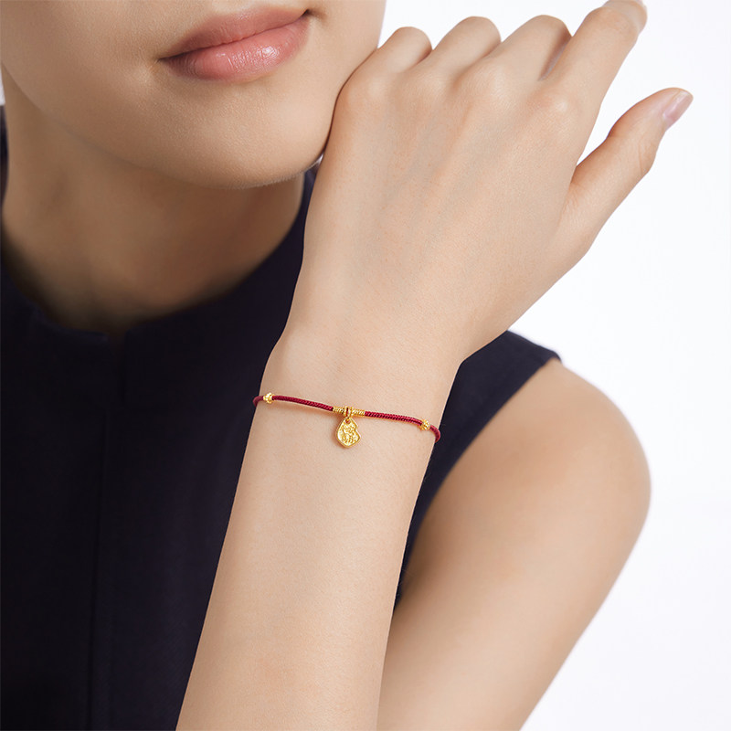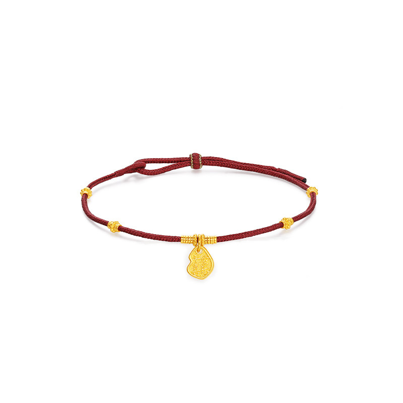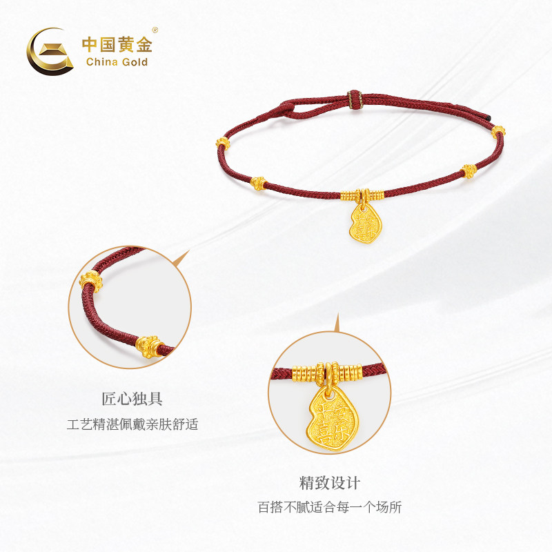 【中国黄金官方店】黄金手饰古法平安喜乐足金手串新品首饰送女友