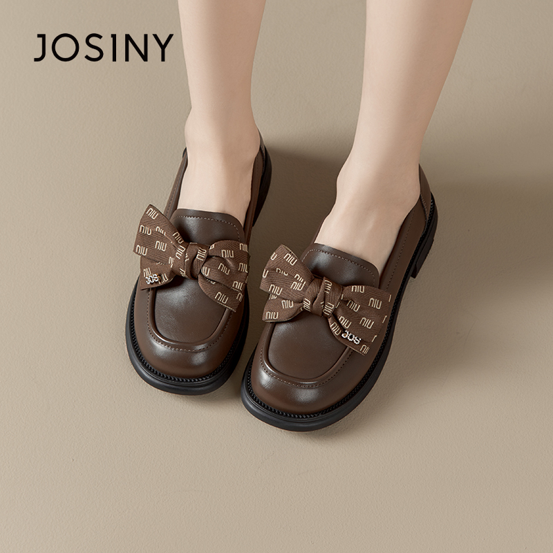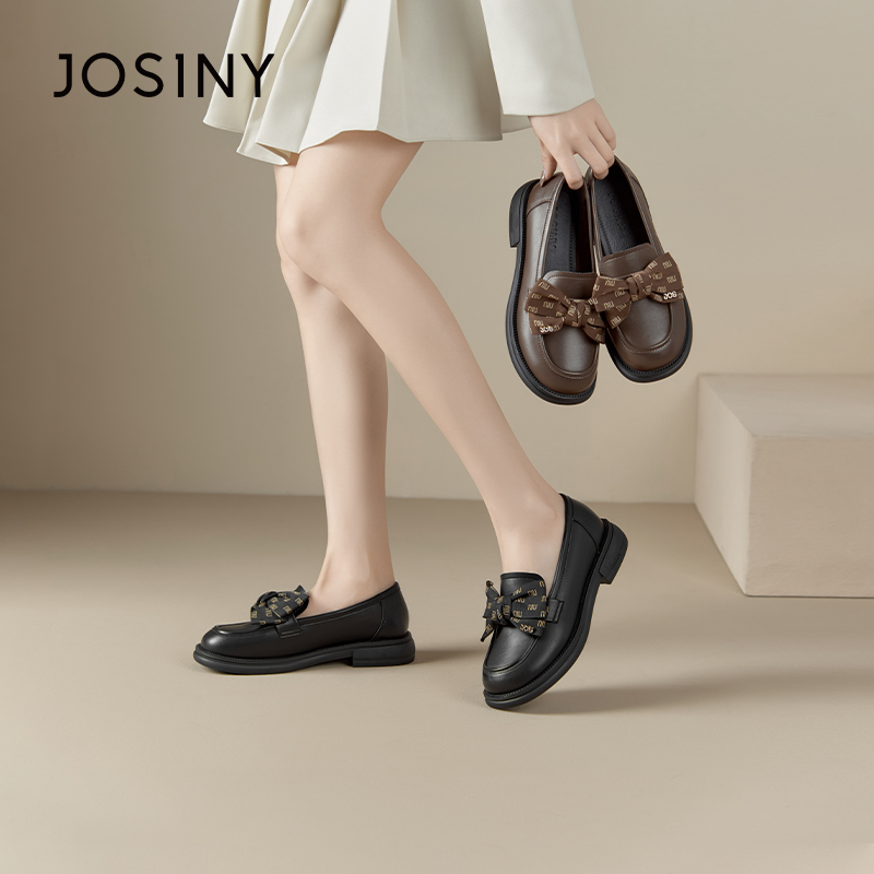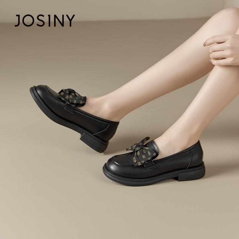 卓诗尼女鞋撤柜新品学院感休闲乐福鞋字母蝴蝶结圆头包边低跟百搭