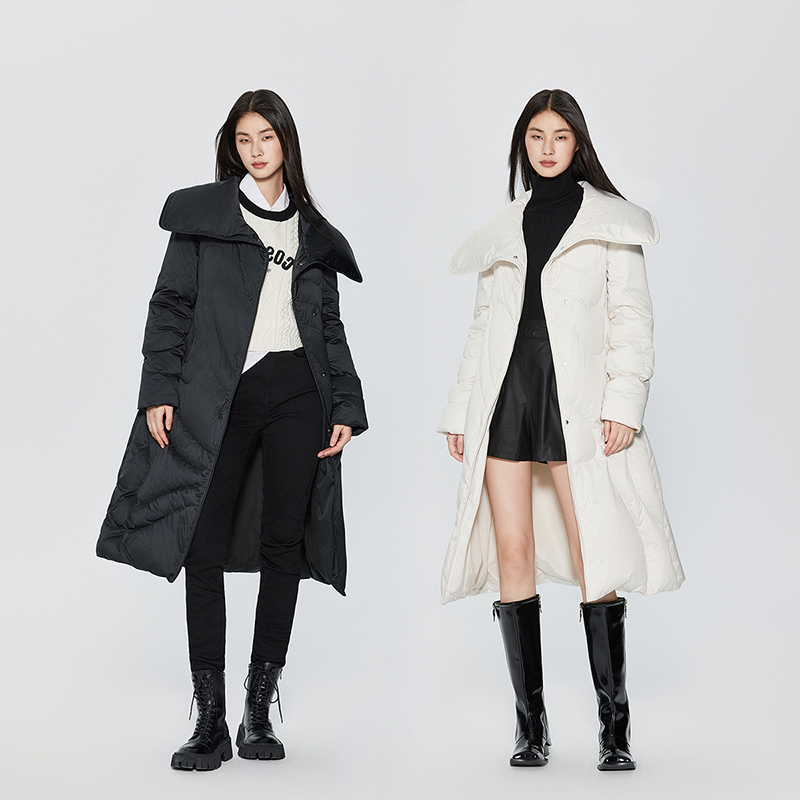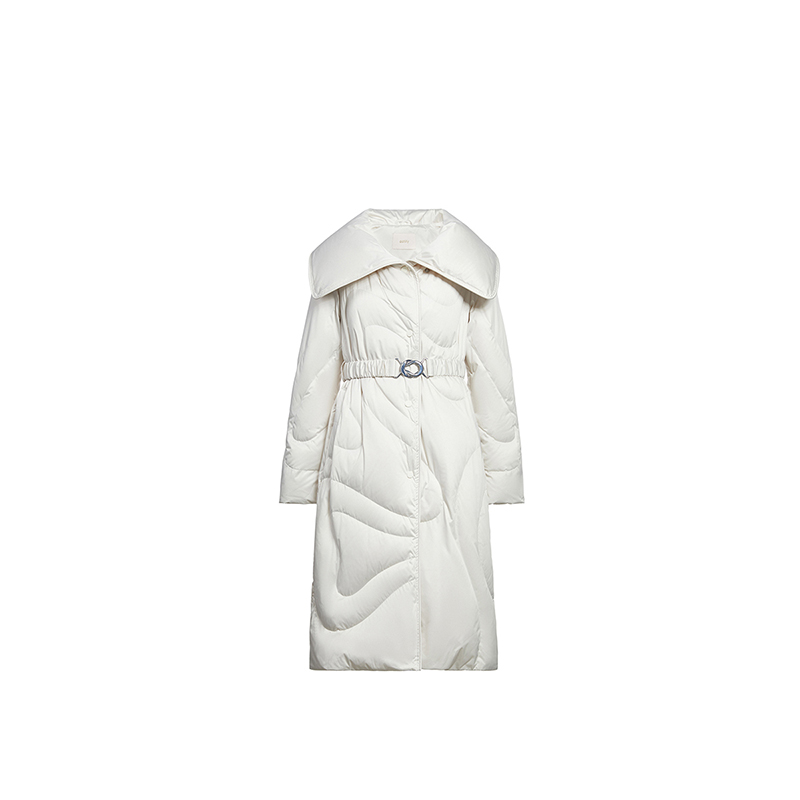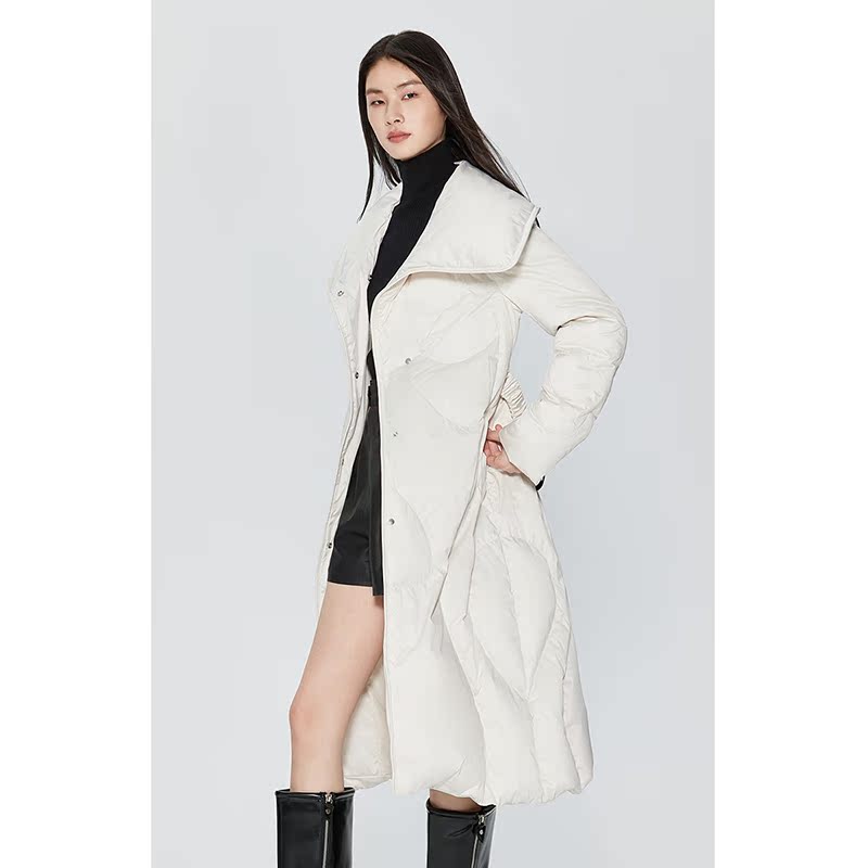 ochirly欧时力 翻领中长款羽绒服女2023新款秋冬外套配腰带保暖