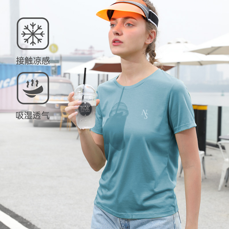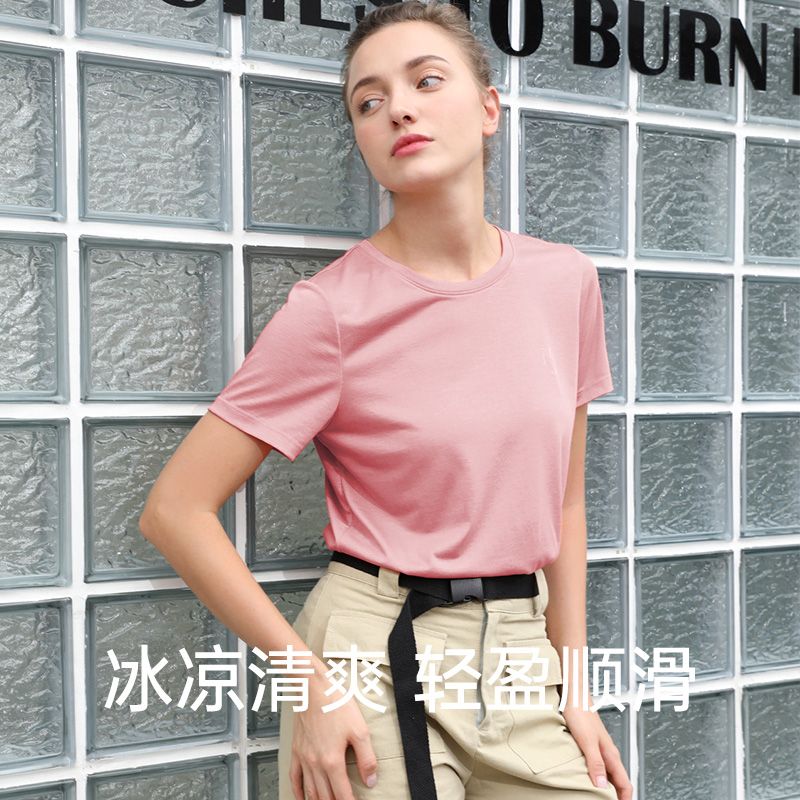 新一系女士短袖T恤夏季新款天丝凉感女装上衣圆领纯色休闲打底衫