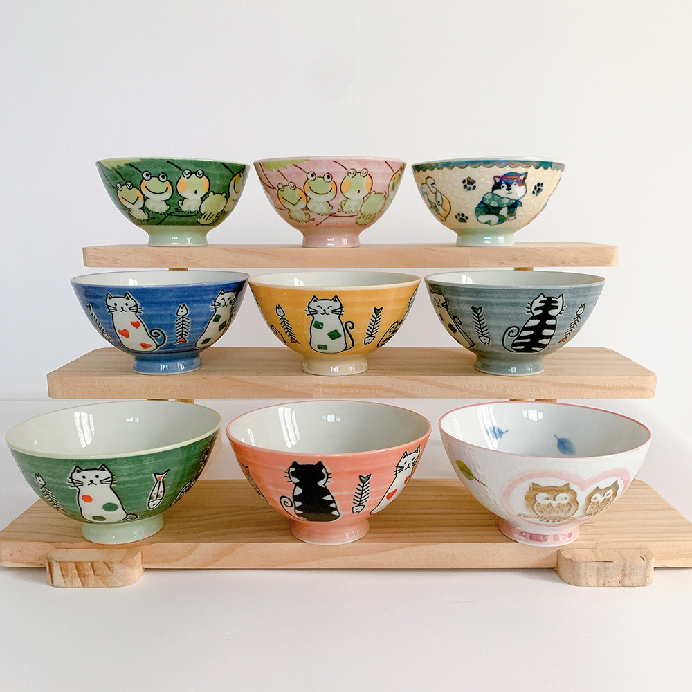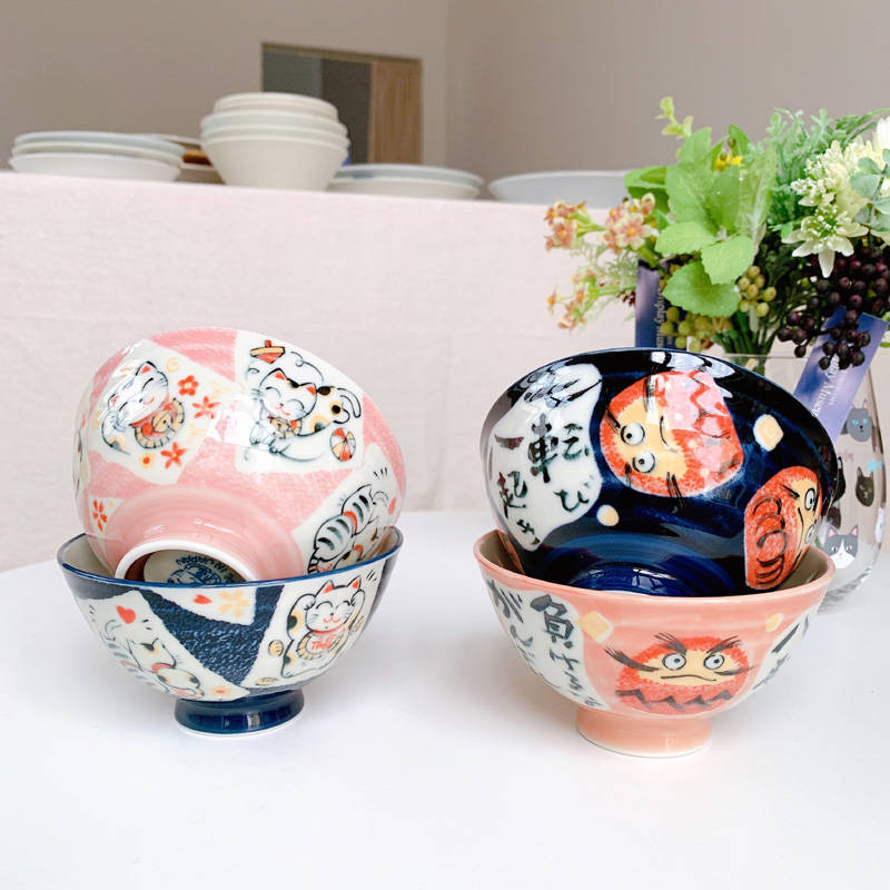日本进口美浓烧家用陶瓷米饭碗小熊兔子小碗达摩招财猫和风日式餐