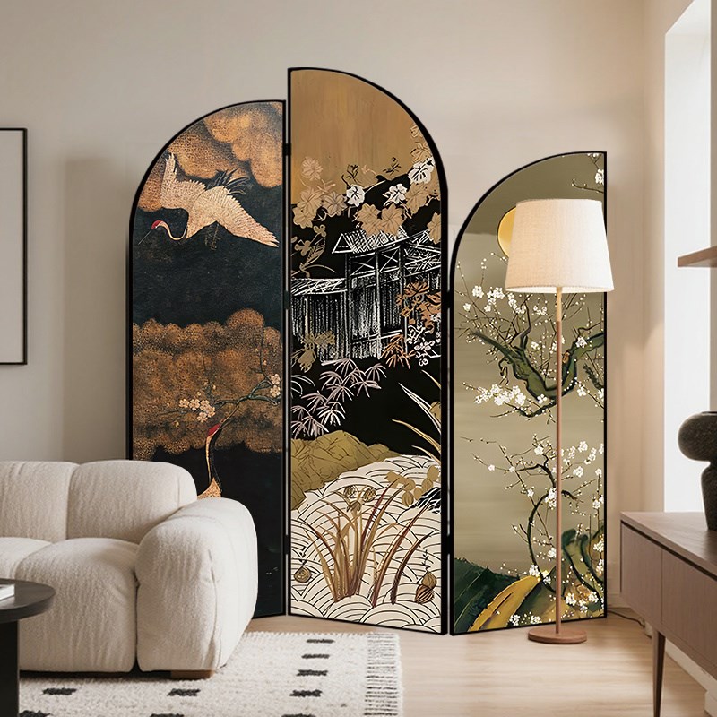 法式复古屏风隔断客厅入户玄关酒店办公室折叠移动奶油风折屏